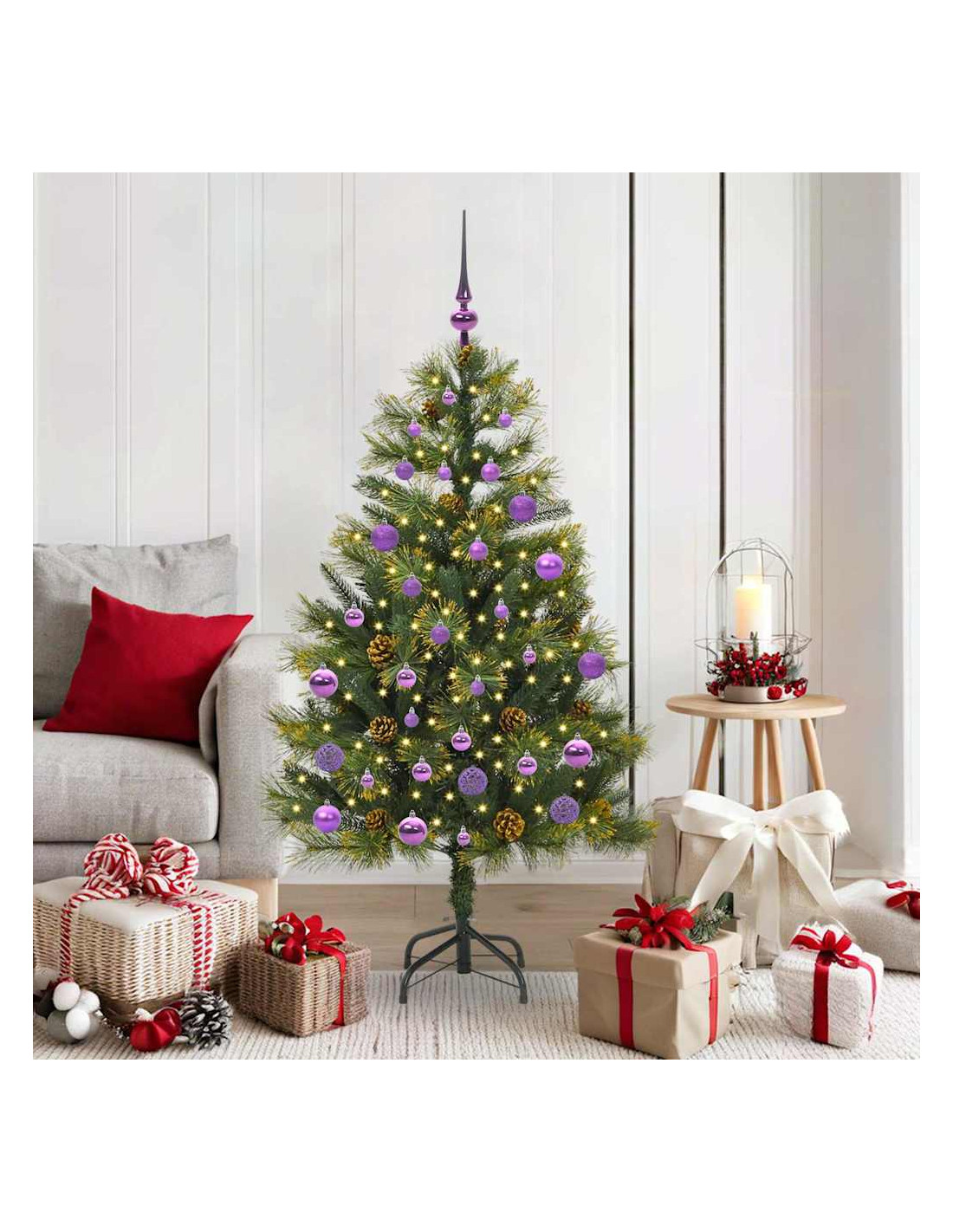 - Usi Raccomandati: Perfetto per interni ed esterni, l'albero abbellisce soggiorni, terrazzi e qualsiasi altro spazio in modo festivo. La sua forma slanciata lo rende adatto anche per spazi più ristretti, ideale per appartamenti.