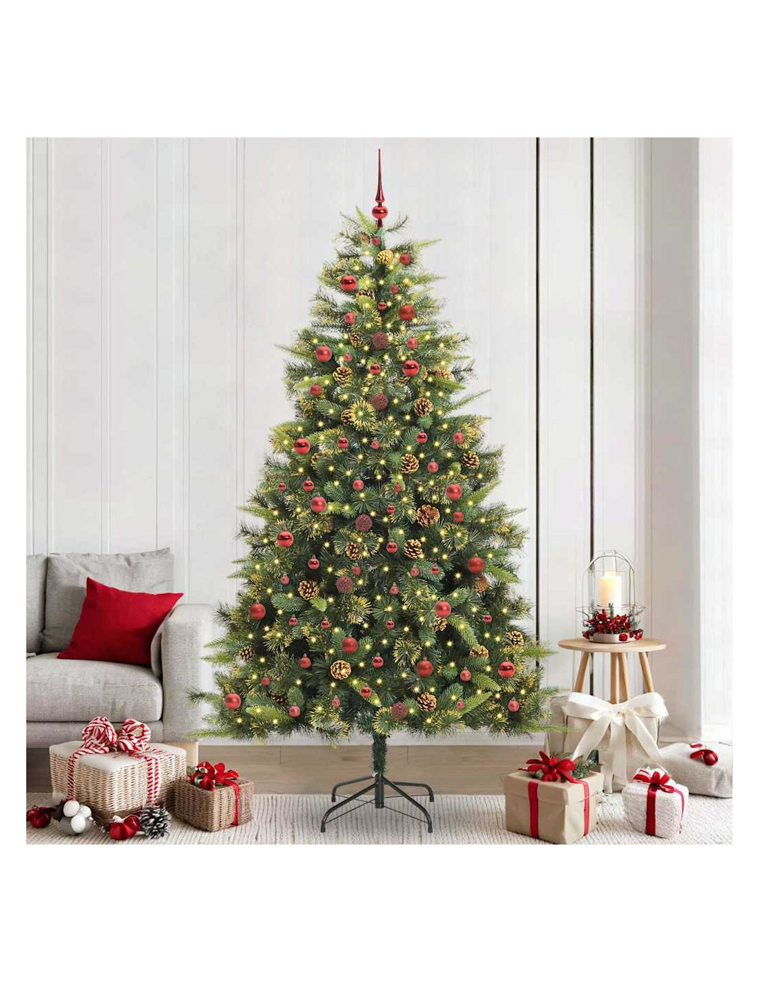 - Materiali: L'albero è realizzato in PVC di alta qualità, noto per la sua durata e il suo aspetto reale. Questo materiale assicura che l'albero sarà un elemento festivo per anni, mantenendo i colori vivaci e la sua struttura intatta. Non perde aghi, offrendo una soluzione decorativa più pulita e senza il fastidio della manutenzione degli alberi naturali.