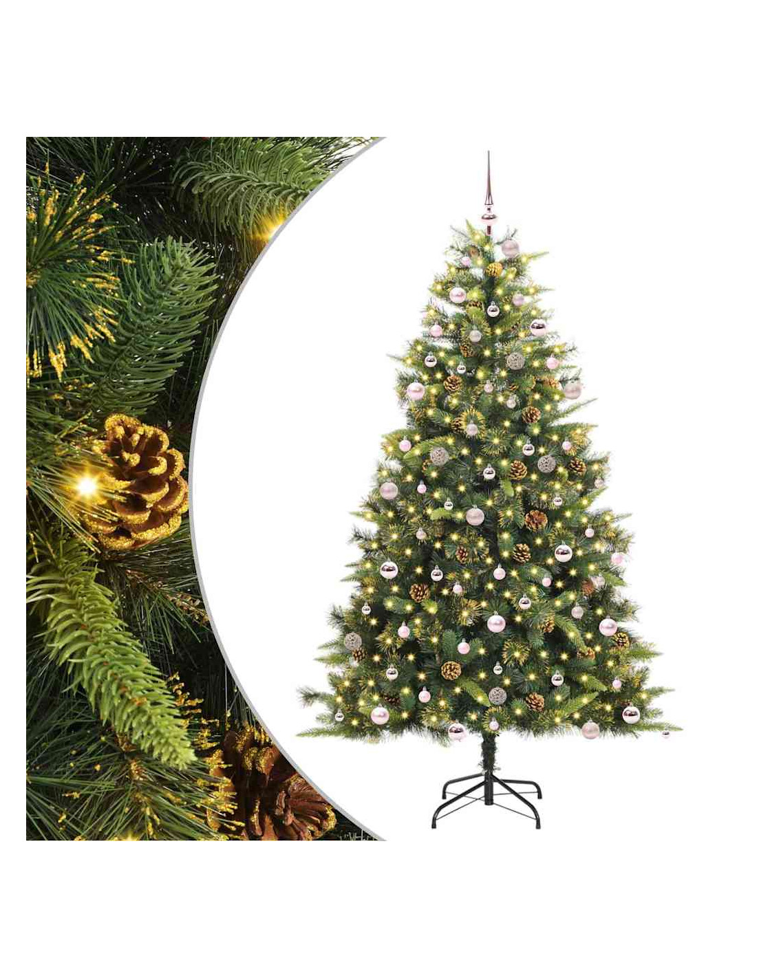- Materiali: L'albero è realizzato in PVC di alta qualità, noto per la sua durata e il suo aspetto reale. Questo materiale assicura che l'albero sarà un elemento festivo per anni, mantenendo i colori vivaci e la sua struttura intatta. Non perde aghi, offrendo una soluzione decorativa più pulita e senza il fastidio della manutenzione degli alberi naturali.