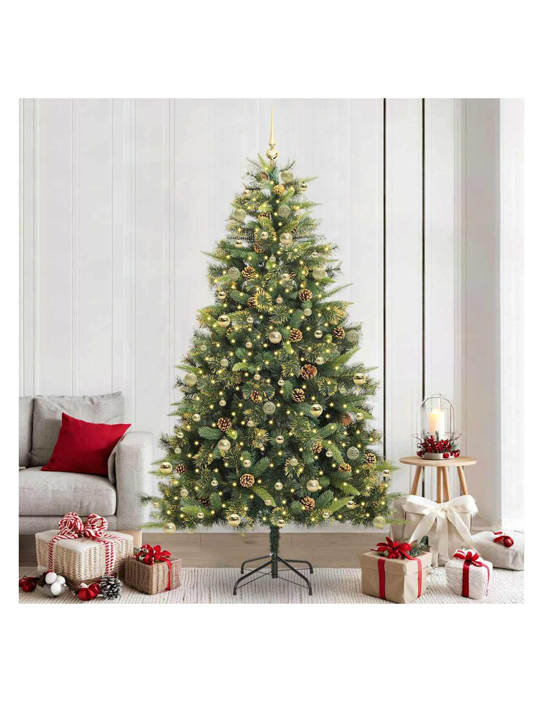 - Materiali: L'albero è realizzato in PVC di alta qualità, noto per la sua durata e il suo aspetto reale. Questo materiale assicura che l'albero sarà un elemento festivo per anni, mantenendo i colori vivaci e la sua struttura intatta. Non perde aghi, offrendo una soluzione decorativa più pulita e senza il fastidio della manutenzione degli alberi naturali.