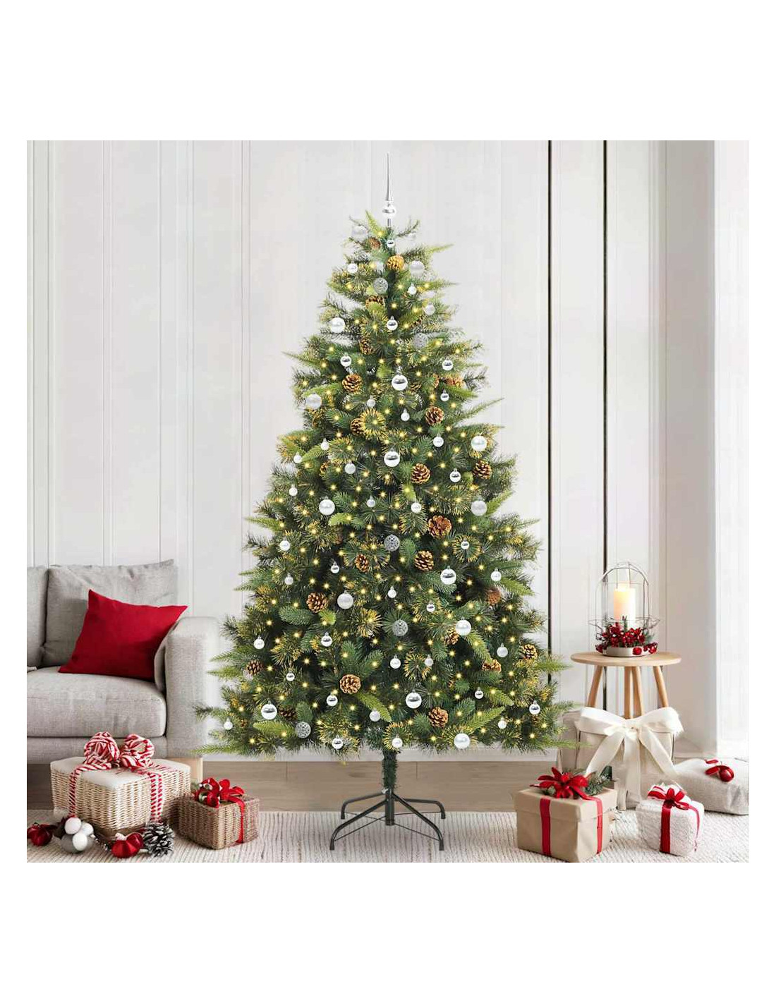 - Materiali: L'albero è realizzato in PVC di alta qualità, noto per la sua durata e il suo aspetto reale. Questo materiale assicura che l'albero sarà un elemento festivo per anni, mantenendo i colori vivaci e la sua struttura intatta. Non perde aghi, offrendo una soluzione decorativa più pulita e senza il fastidio della manutenzione degli alberi naturali.