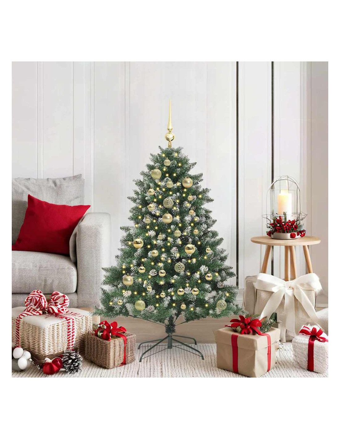 - Materiali: Questo albero è fatto in PVC resistente, quindi dura nel tempo, e i componenti in acciaio offrono stabilità e supporto per anni. Scelti con cura, i materiali garantiscono bellezza e longevità, rendendolo un'aggiunta vivace per le festività tutti gli anni.