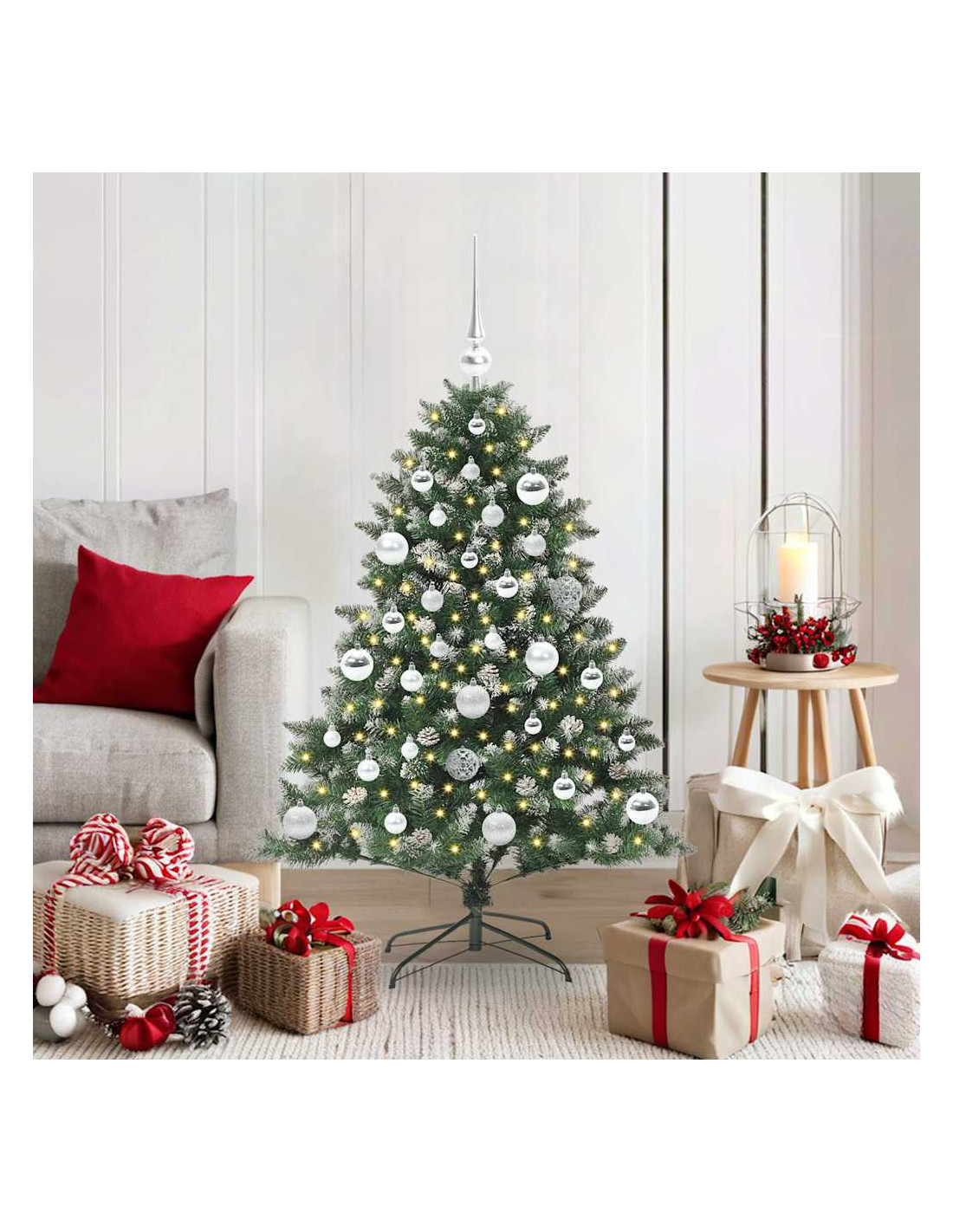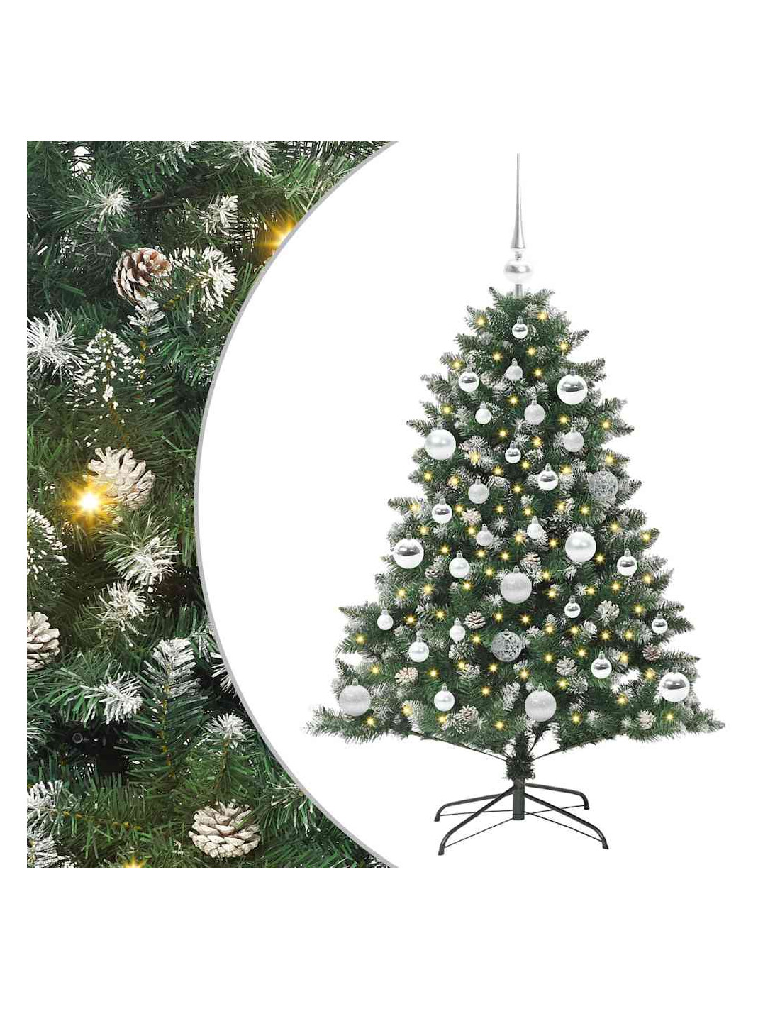 - Materiali: Questo albero è fatto in PVC resistente, quindi dura nel tempo, e i componenti in acciaio offrono stabilità e supporto per anni. Scelti con cura, i materiali garantiscono bellezza e longevità, rendendolo un'aggiunta vivace per le festività tutti gli anni.