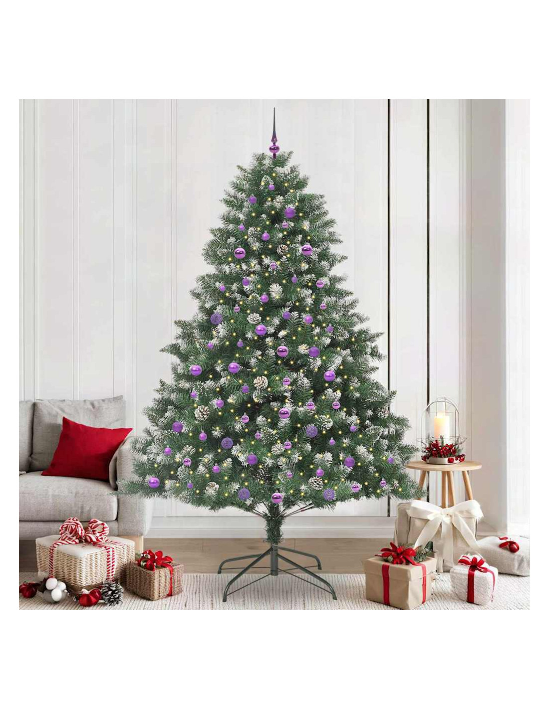 - Materiali: Questo albero è fatto in PVC resistente, quindi dura nel tempo, e i componenti in acciaio offrono stabilità e supporto per anni. Scelti con cura, i materiali garantiscono bellezza e longevità, rendendolo un'aggiunta vivace per le festività tutti gli anni.