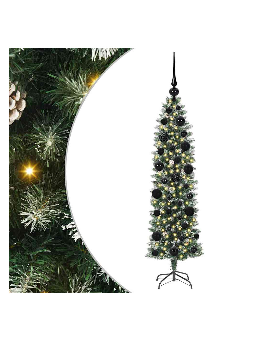 Questo albero di Natale artificiale sottile mescola stile moderno e aspetto realistico, rendendolo un'ottima aggiunta alla tua decorazione per le feste. La sua forma conica si integra bene in qualsiasi soggiorno, perfetto per spazi piccoli o appartamenti. Con materiali in PVC e metallo, emula la bellezza naturale di un pino tradizionale e offre anche resistenza per le feste. Goditi il caldo bagliore delle sue luci a striscia LED che portano un'atmosfera gioiosa ai raduni familiari, feste e serate accoglienti.