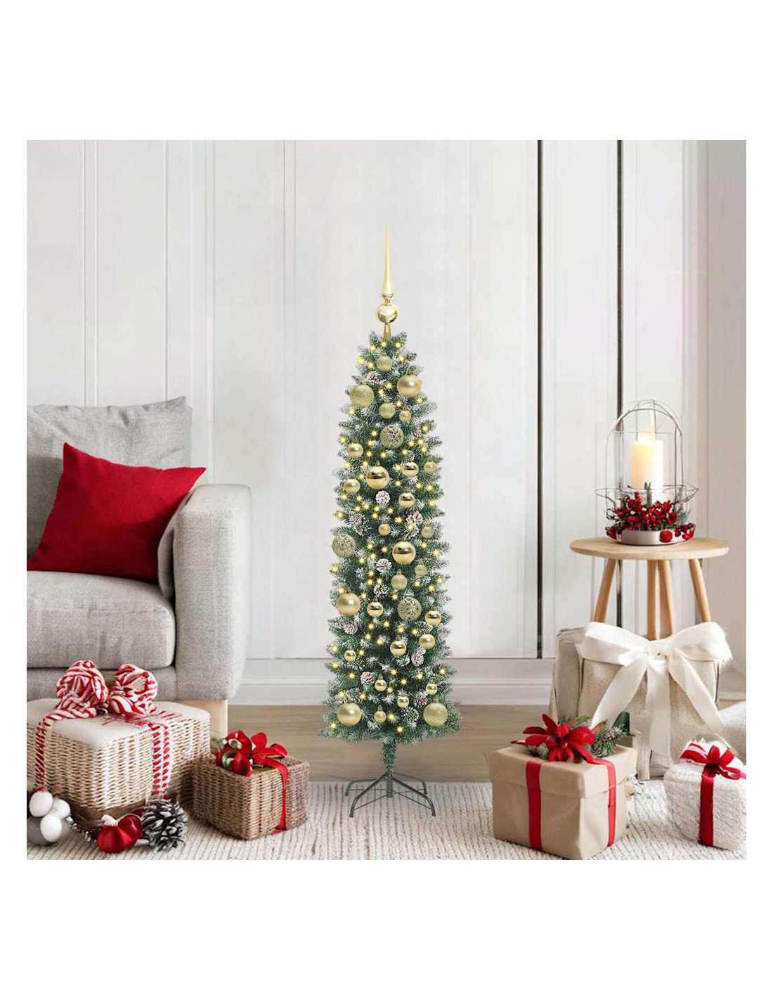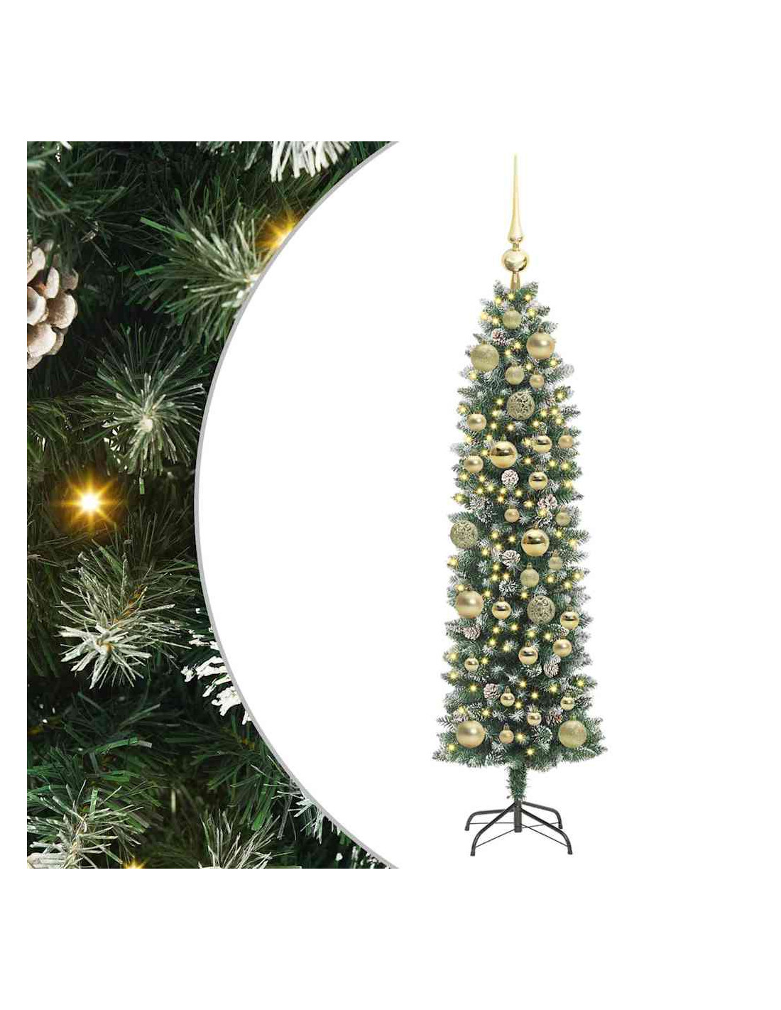Questo albero di Natale artificiale sottile mescola stile moderno e aspetto realistico, rendendolo un'ottima aggiunta alla tua decorazione per le feste. La sua forma conica si integra bene in qualsiasi soggiorno, perfetto per spazi piccoli o appartamenti. Con materiali in PVC e metallo, emula la bellezza naturale di un pino tradizionale e offre anche resistenza per le feste. Goditi il caldo bagliore delle sue luci a striscia LED che portano un'atmosfera gioiosa ai raduni familiari, feste e serate accoglienti.