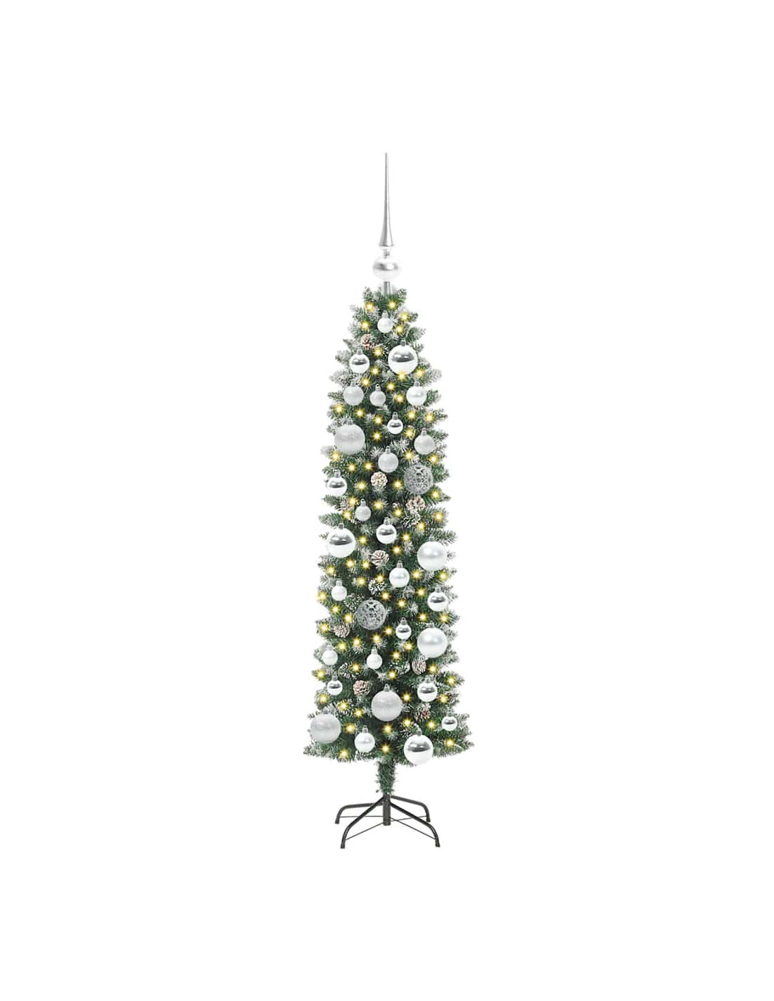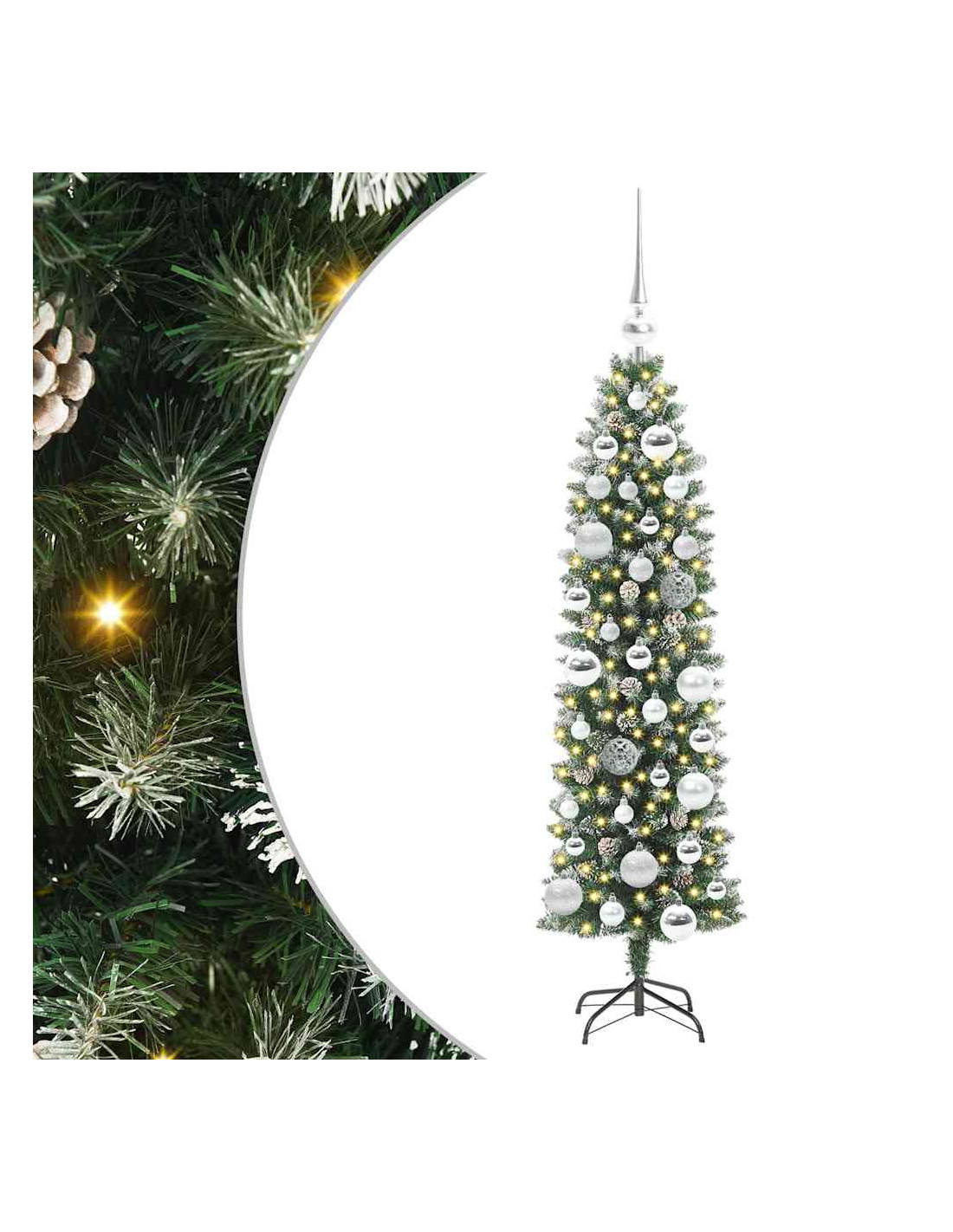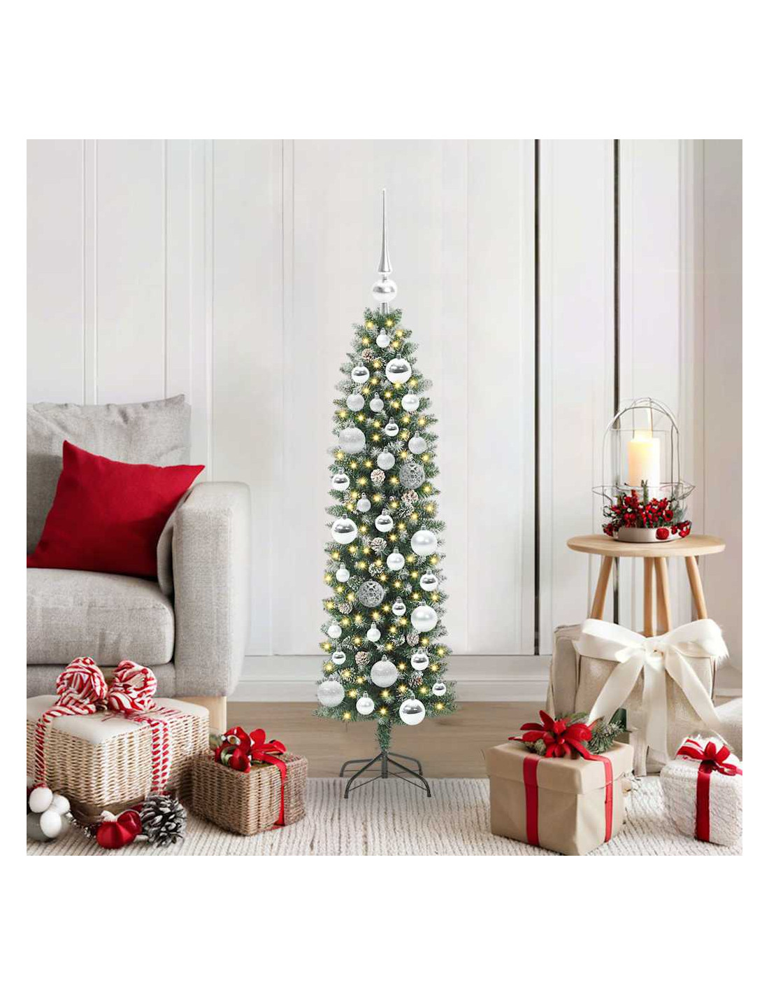 Questo albero di Natale artificiale sottile mescola stile moderno e aspetto realistico, rendendolo un'ottima aggiunta alla tua decorazione per le feste. La sua forma conica si integra bene in qualsiasi soggiorno, perfetto per spazi piccoli o appartamenti. Con materiali in PVC e metallo, emula la bellezza naturale di un pino tradizionale e offre anche resistenza per le feste. Goditi il caldo bagliore delle sue luci a striscia LED che portano un'atmosfera gioiosa ai raduni familiari, feste e serate accoglienti.