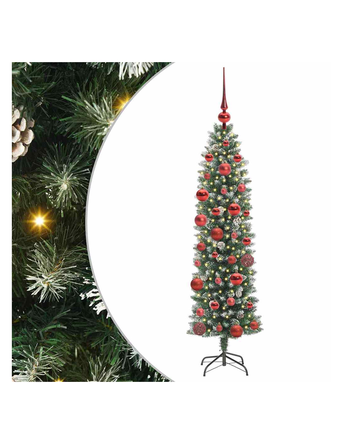 Questo albero di Natale artificiale sottile mescola stile moderno e aspetto realistico, rendendolo un'ottima aggiunta alla tua decorazione per le feste. La sua forma conica si integra bene in qualsiasi soggiorno, perfetto per spazi piccoli o appartamenti. Con materiali in PVC e metallo, emula la bellezza naturale di un pino tradizionale e offre anche resistenza per le feste. Goditi il caldo bagliore delle sue luci a striscia LED che portano un'atmosfera gioiosa ai raduni familiari, feste e serate accoglienti.