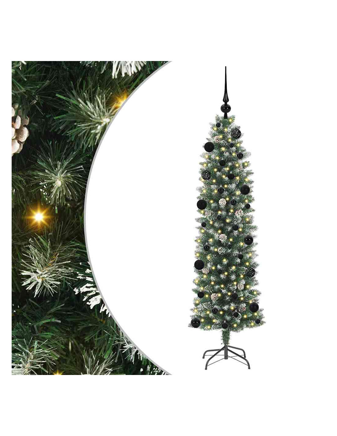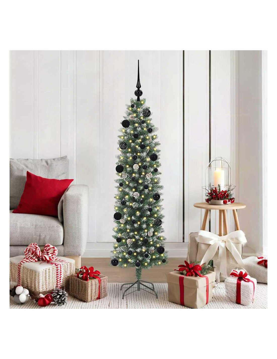Questo albero di Natale artificiale sottile mescola stile moderno e aspetto realistico, rendendolo un'ottima aggiunta alla tua decorazione per le feste. La sua forma conica si integra bene in qualsiasi soggiorno, perfetto per spazi piccoli o appartamenti. Con materiali in PVC e metallo, emula la bellezza naturale di un pino tradizionale e offre anche resistenza per le feste. Goditi il caldo bagliore delle sue luci a striscia LED che portano un'atmosfera gioiosa ai raduni familiari, feste e serate accoglienti.