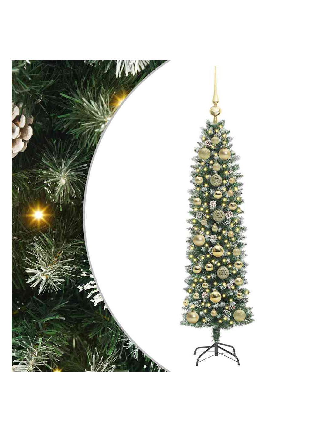 Questo albero di Natale artificiale sottile mescola stile moderno e aspetto realistico, rendendolo un'ottima aggiunta alla tua decorazione per le feste. La sua forma conica si integra bene in qualsiasi soggiorno, perfetto per spazi piccoli o appartamenti. Con materiali in PVC e metallo, emula la bellezza naturale di un pino tradizionale e offre anche resistenza per le feste. Goditi il caldo bagliore delle sue luci a striscia LED che portano un'atmosfera gioiosa ai raduni familiari, feste e serate accoglienti.