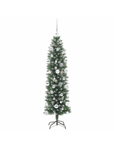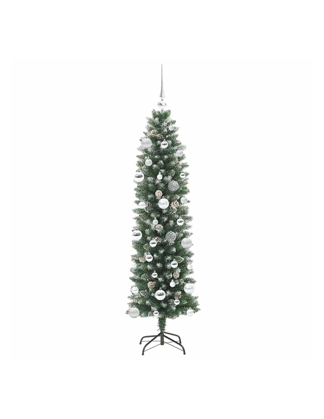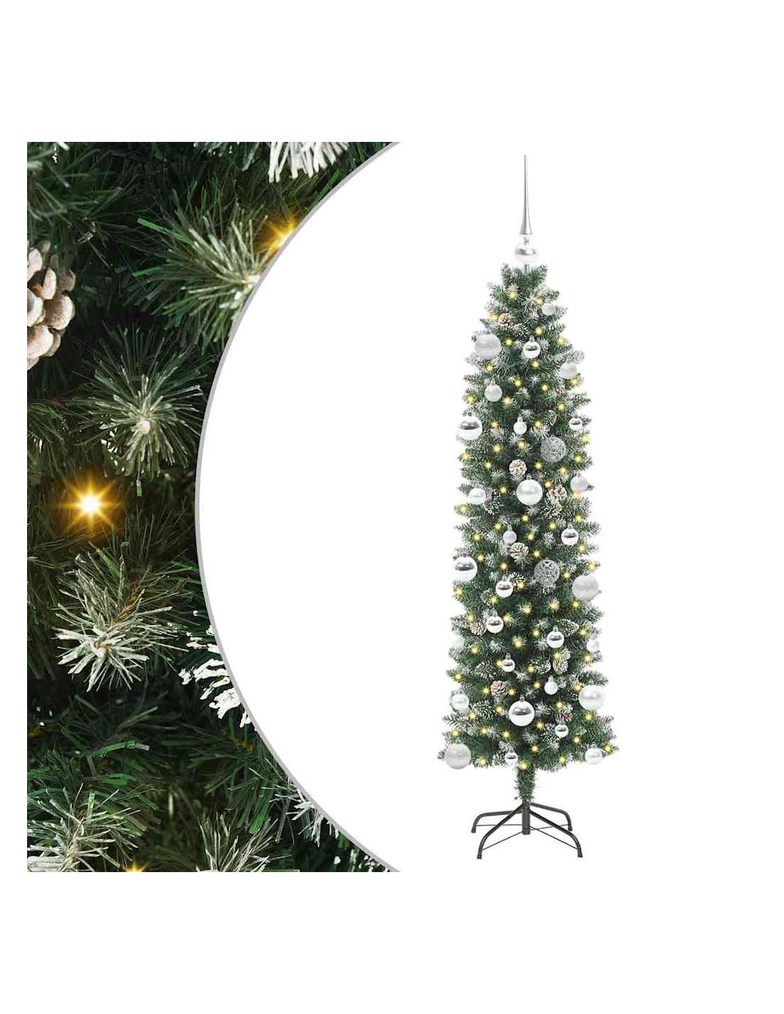 Questo albero di Natale artificiale sottile mescola stile moderno e aspetto realistico, rendendolo un'ottima aggiunta alla tua decorazione per le feste. La sua forma conica si integra bene in qualsiasi soggiorno, perfetto per spazi piccoli o appartamenti. Con materiali in PVC e metallo, emula la bellezza naturale di un pino tradizionale e offre anche resistenza per le feste. Goditi il caldo bagliore delle sue luci a striscia LED che portano un'atmosfera gioiosa ai raduni familiari, feste e serate accoglienti.