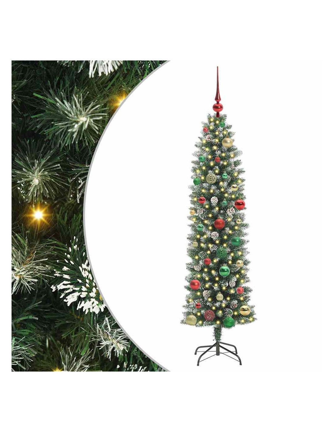 Questo albero di Natale artificiale sottile mescola stile moderno e aspetto realistico, rendendolo un'ottima aggiunta alla tua decorazione per le feste. La sua forma conica si integra bene in qualsiasi soggiorno, perfetto per spazi piccoli o appartamenti. Con materiali in PVC e metallo, emula la bellezza naturale di un pino tradizionale e offre anche resistenza per le feste. Goditi il caldo bagliore delle sue luci a striscia LED che portano un'atmosfera gioiosa ai raduni familiari, feste e serate accoglienti.