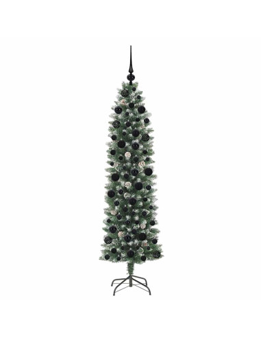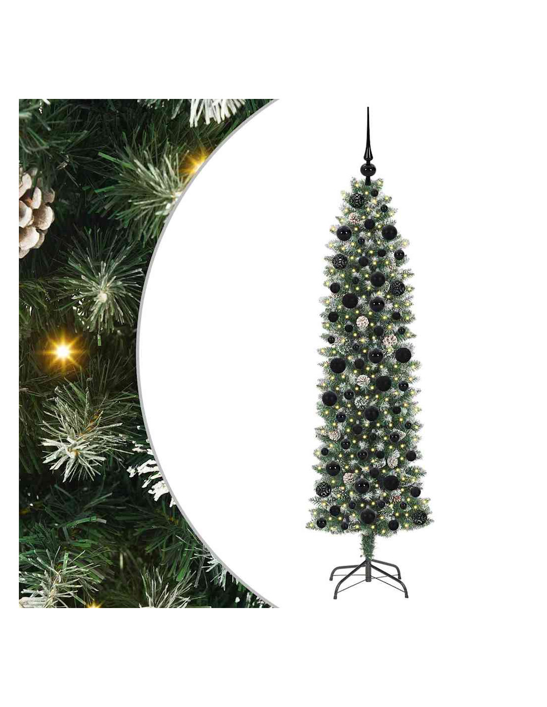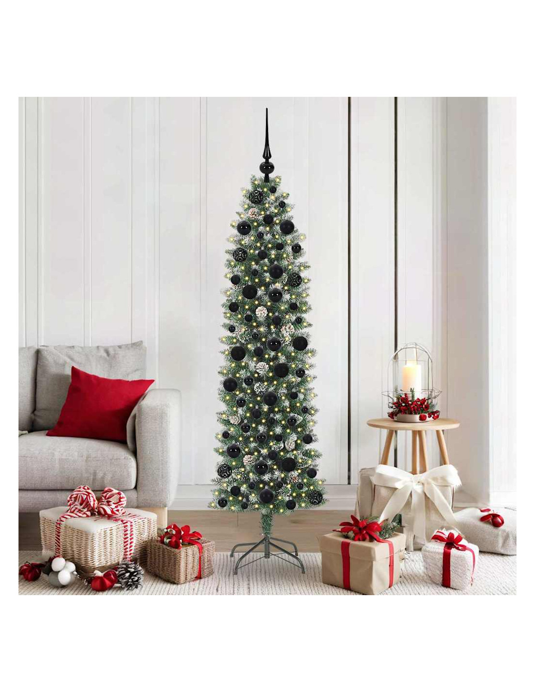 Questo albero di Natale artificiale sottile mescola stile moderno e aspetto realistico, rendendolo un'ottima aggiunta alla tua decorazione per le feste. La sua forma conica si integra bene in qualsiasi soggiorno, perfetto per spazi piccoli o appartamenti. Con materiali in PVC e metallo, emula la bellezza naturale di un pino tradizionale e offre anche resistenza per le feste. Goditi il caldo bagliore delle sue luci a striscia LED che portano un'atmosfera gioiosa ai raduni familiari, feste e serate accoglienti.