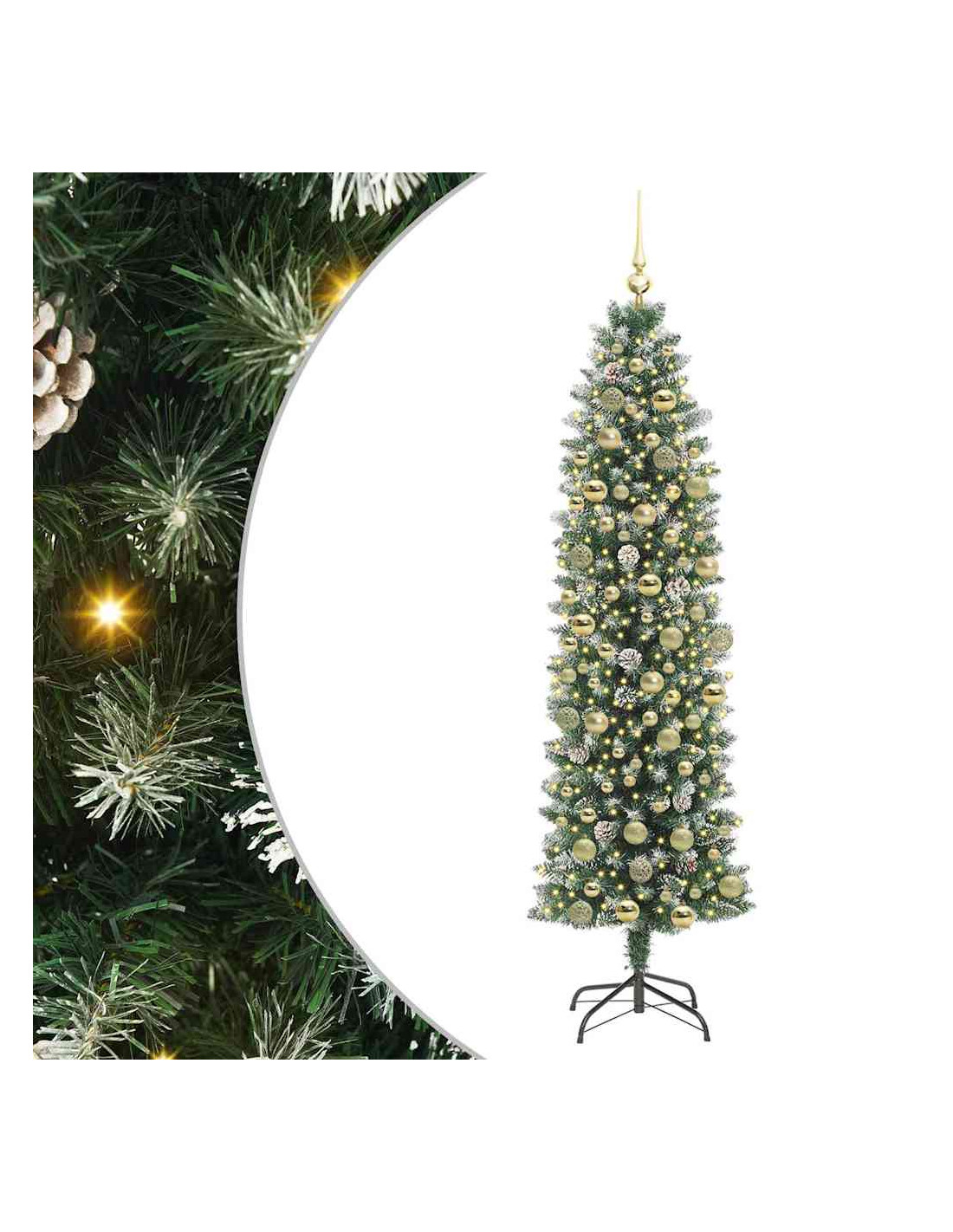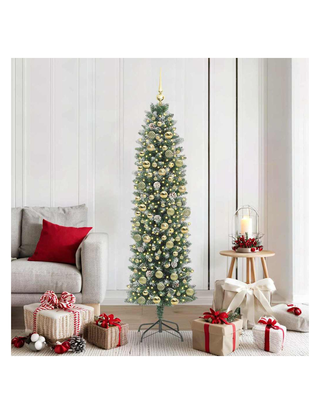 Questo albero di Natale artificiale sottile mescola stile moderno e aspetto realistico, rendendolo un'ottima aggiunta alla tua decorazione per le feste. La sua forma conica si integra bene in qualsiasi soggiorno, perfetto per spazi piccoli o appartamenti. Con materiali in PVC e metallo, emula la bellezza naturale di un pino tradizionale e offre anche resistenza per le feste. Goditi il caldo bagliore delle sue luci a striscia LED che portano un'atmosfera gioiosa ai raduni familiari, feste e serate accoglienti.