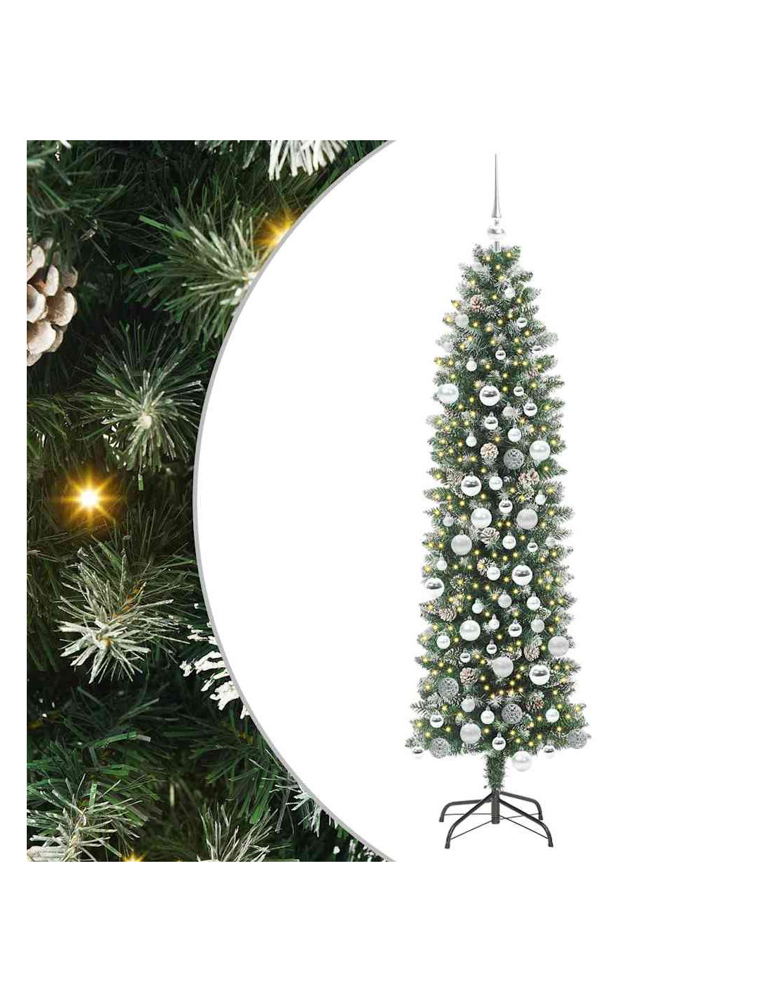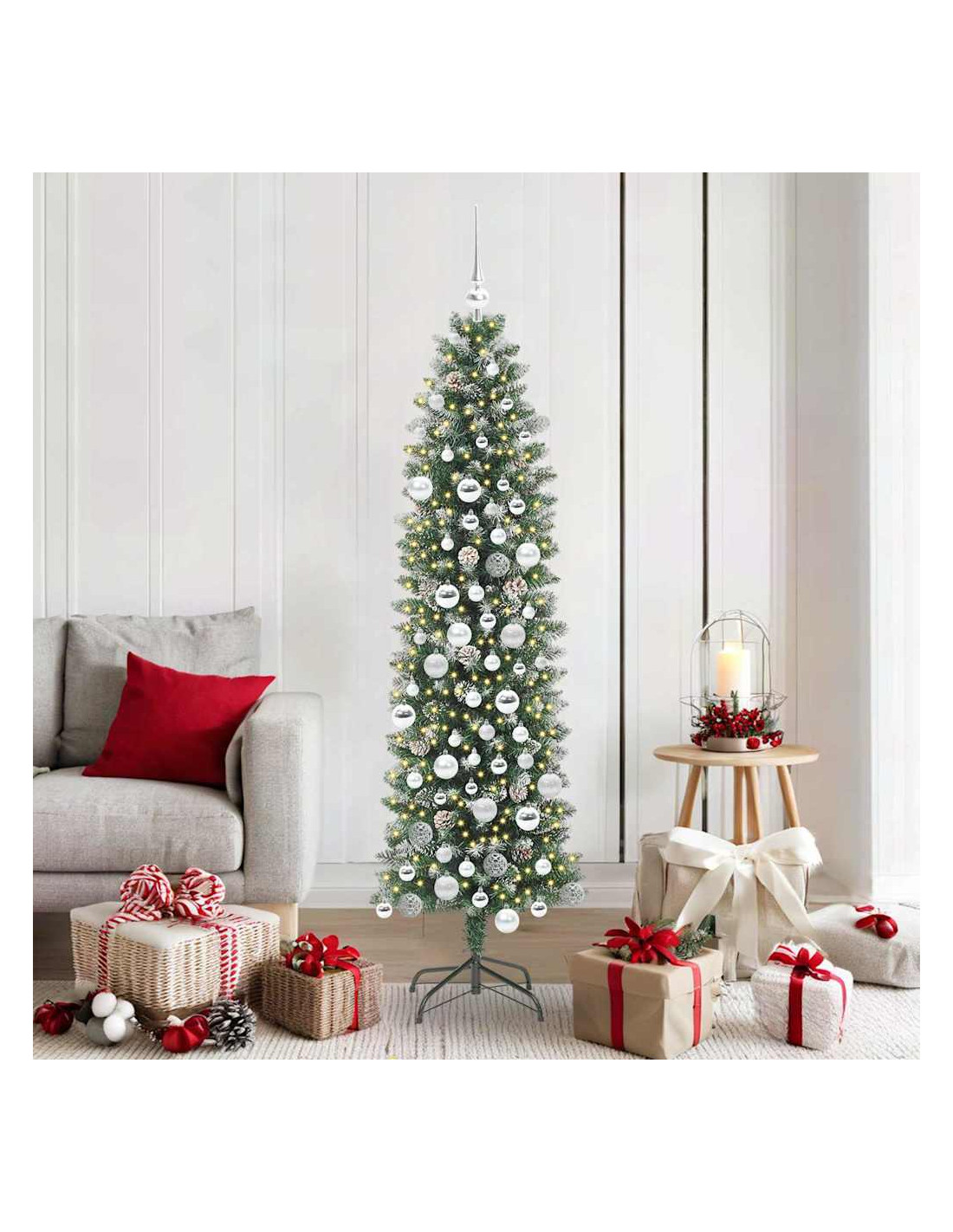 Questo albero di Natale artificiale sottile mescola stile moderno e aspetto realistico, rendendolo un'ottima aggiunta alla tua decorazione per le feste. La sua forma conica si integra bene in qualsiasi soggiorno, perfetto per spazi piccoli o appartamenti. Con materiali in PVC e metallo, emula la bellezza naturale di un pino tradizionale e offre anche resistenza per le feste. Goditi il caldo bagliore delle sue luci a striscia LED che portano un'atmosfera gioiosa ai raduni familiari, feste e serate accoglienti.