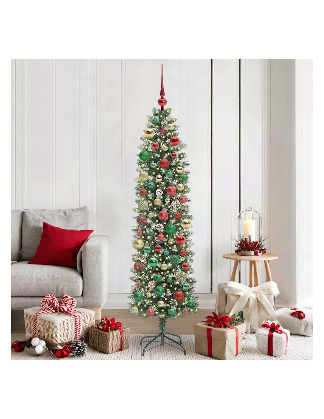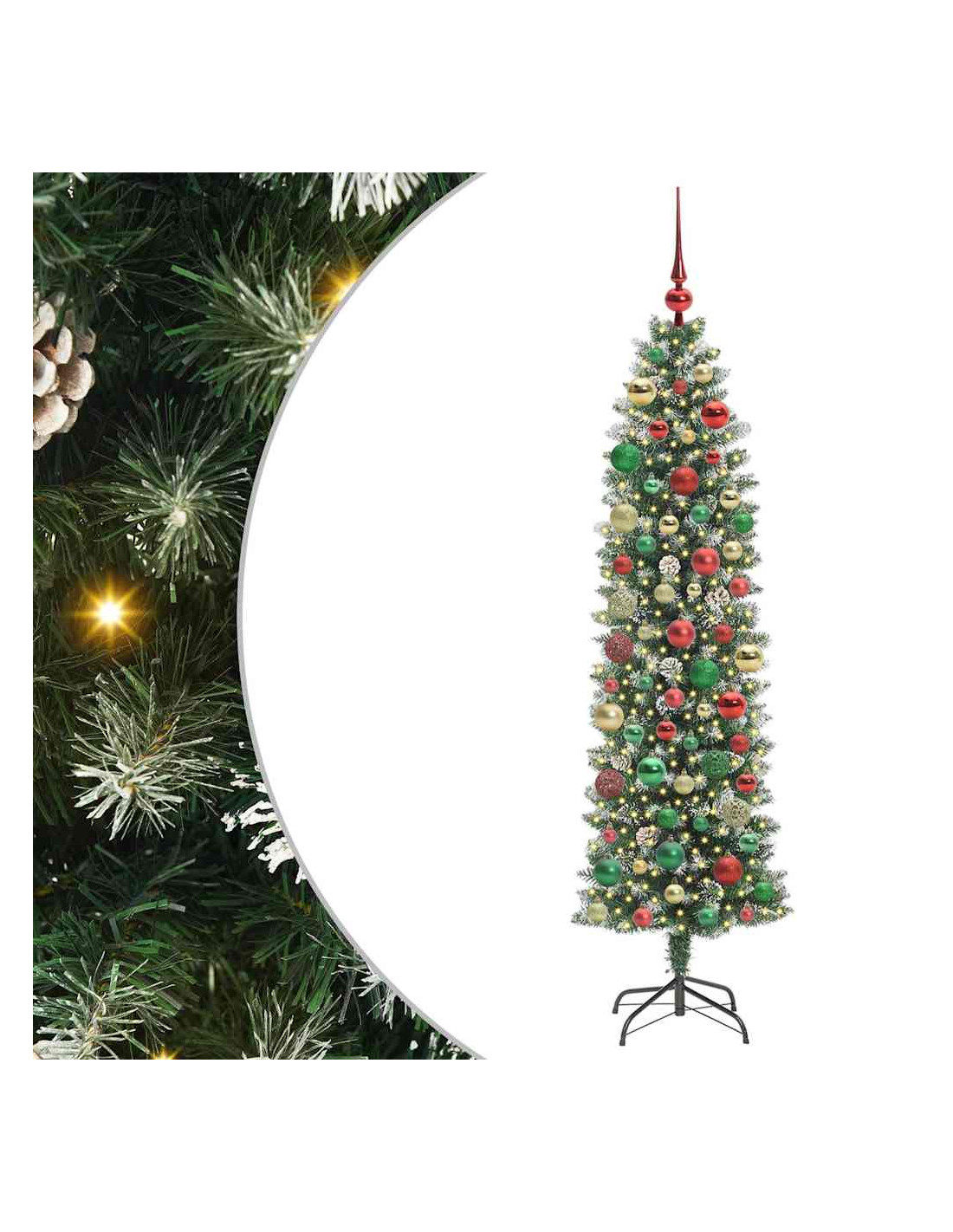Questo albero di Natale artificiale sottile mescola stile moderno e aspetto realistico, rendendolo un'ottima aggiunta alla tua decorazione per le feste. La sua forma conica si integra bene in qualsiasi soggiorno, perfetto per spazi piccoli o appartamenti. Con materiali in PVC e metallo, emula la bellezza naturale di un pino tradizionale e offre anche resistenza per le feste. Goditi il caldo bagliore delle sue luci a striscia LED che portano un'atmosfera gioiosa ai raduni familiari, feste e serate accoglienti.