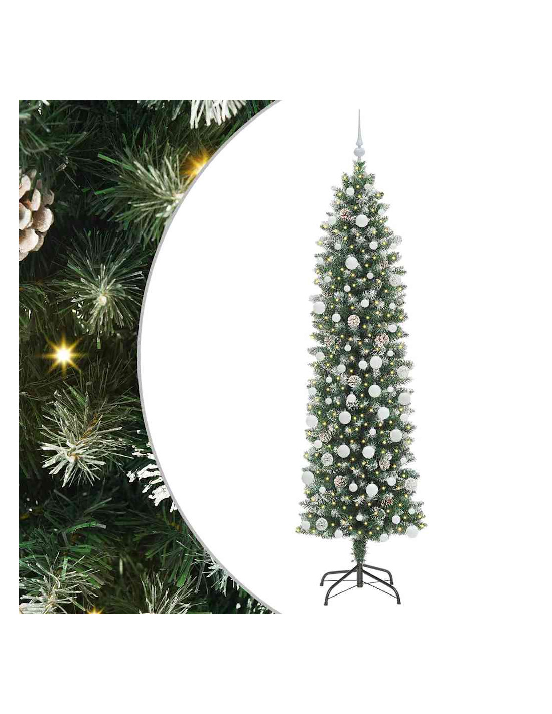 Questo albero di Natale artificiale sottile mescola stile moderno e aspetto realistico, rendendolo un'ottima aggiunta alla tua decorazione per le feste. La sua forma conica si integra bene in qualsiasi soggiorno, perfetto per spazi piccoli o appartamenti. Con materiali in PVC e metallo, emula la bellezza naturale di un pino tradizionale e offre anche resistenza per le feste. Goditi il caldo bagliore delle sue luci a striscia LED che portano un'atmosfera gioiosa ai raduni familiari, feste e serate accoglienti.