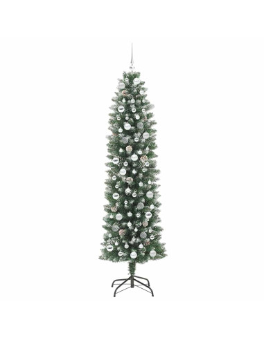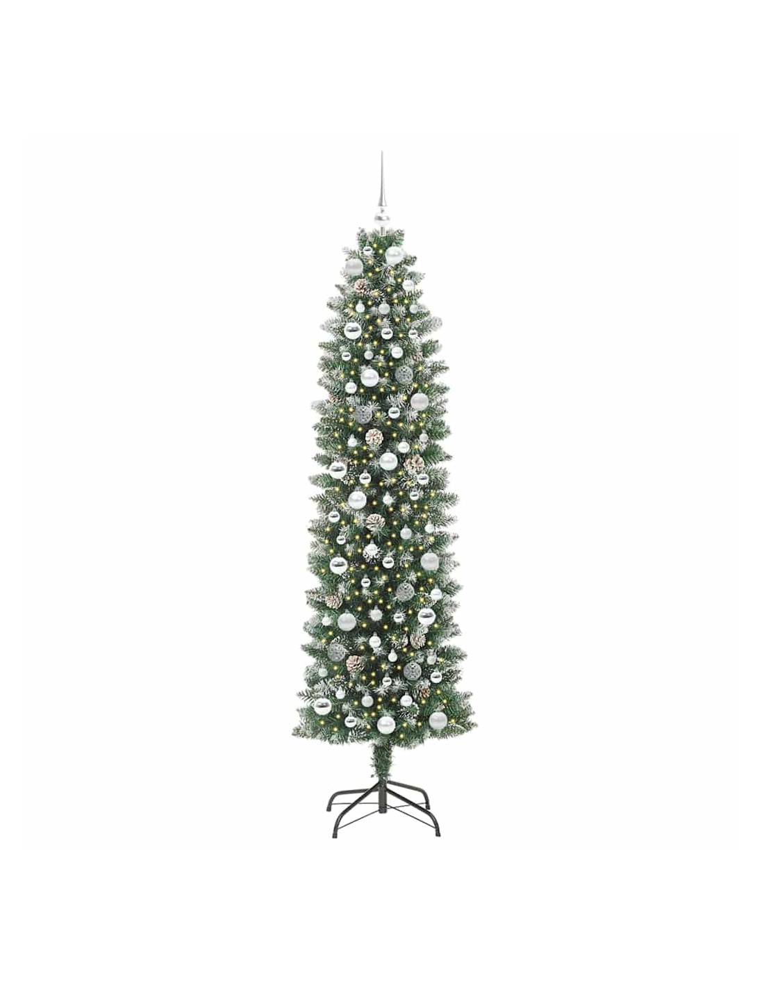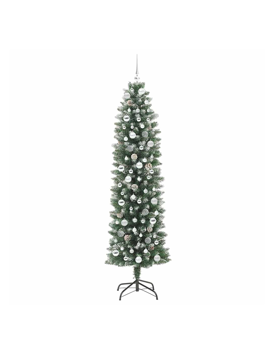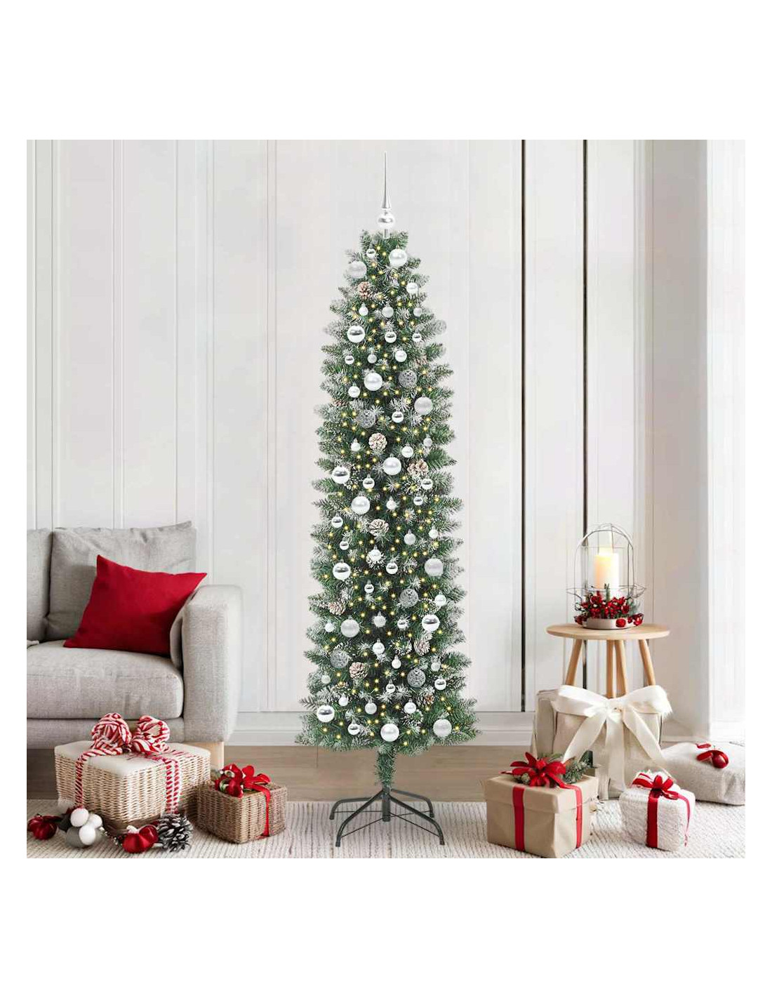 Questo albero di Natale artificiale sottile mescola stile moderno e aspetto realistico, rendendolo un'ottima aggiunta alla tua decorazione per le feste. La sua forma conica si integra bene in qualsiasi soggiorno, perfetto per spazi piccoli o appartamenti. Con materiali in PVC e metallo, emula la bellezza naturale di un pino tradizionale e offre anche resistenza per le feste. Goditi il caldo bagliore delle sue luci a striscia LED che portano un'atmosfera gioiosa ai raduni familiari, feste e serate accoglienti.