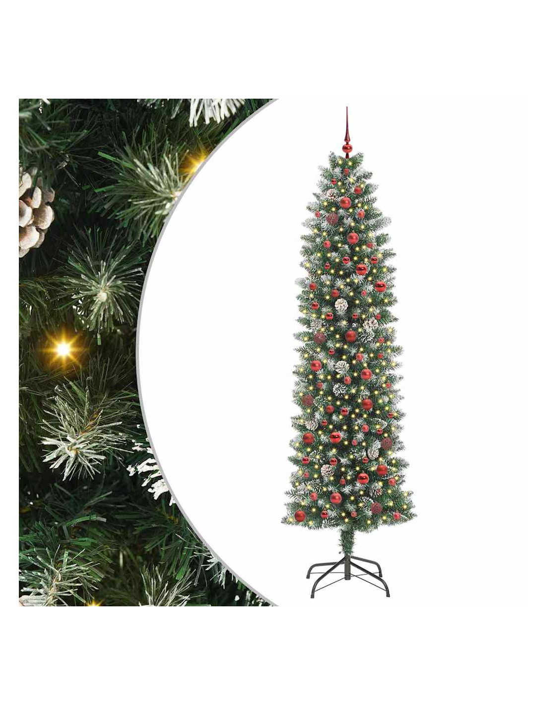 Questo albero di Natale artificiale sottile mescola stile moderno e aspetto realistico, rendendolo un'ottima aggiunta alla tua decorazione per le feste. La sua forma conica si integra bene in qualsiasi soggiorno, perfetto per spazi piccoli o appartamenti. Con materiali in PVC e metallo, emula la bellezza naturale di un pino tradizionale e offre anche resistenza per le feste. Goditi il caldo bagliore delle sue luci a striscia LED che portano un'atmosfera gioiosa ai raduni familiari, feste e serate accoglienti.