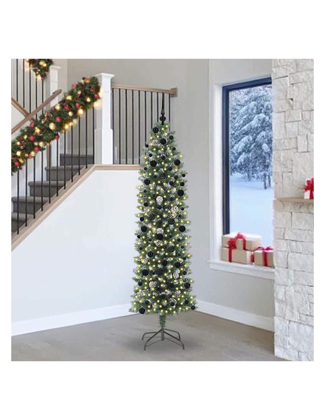 Questo albero di Natale artificiale sottile mescola stile moderno e aspetto realistico, rendendolo un'ottima aggiunta alla tua decorazione per le feste. La sua forma conica si integra bene in qualsiasi soggiorno, perfetto per spazi piccoli o appartamenti. Con materiali in PVC e metallo, emula la bellezza naturale di un pino tradizionale e offre anche resistenza per le feste. Goditi il caldo bagliore delle sue luci a striscia LED che portano un'atmosfera gioiosa ai raduni familiari, feste e serate accoglienti.