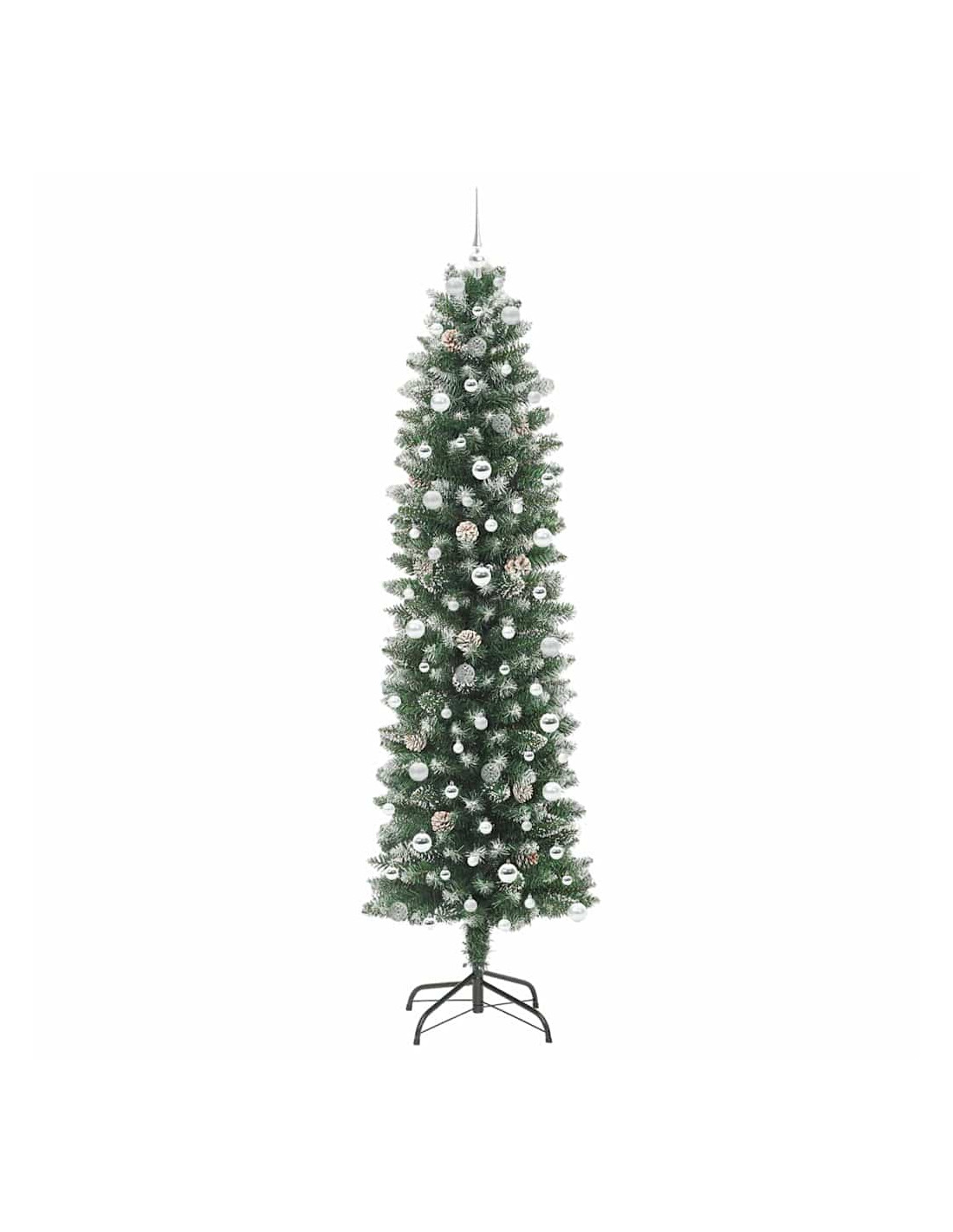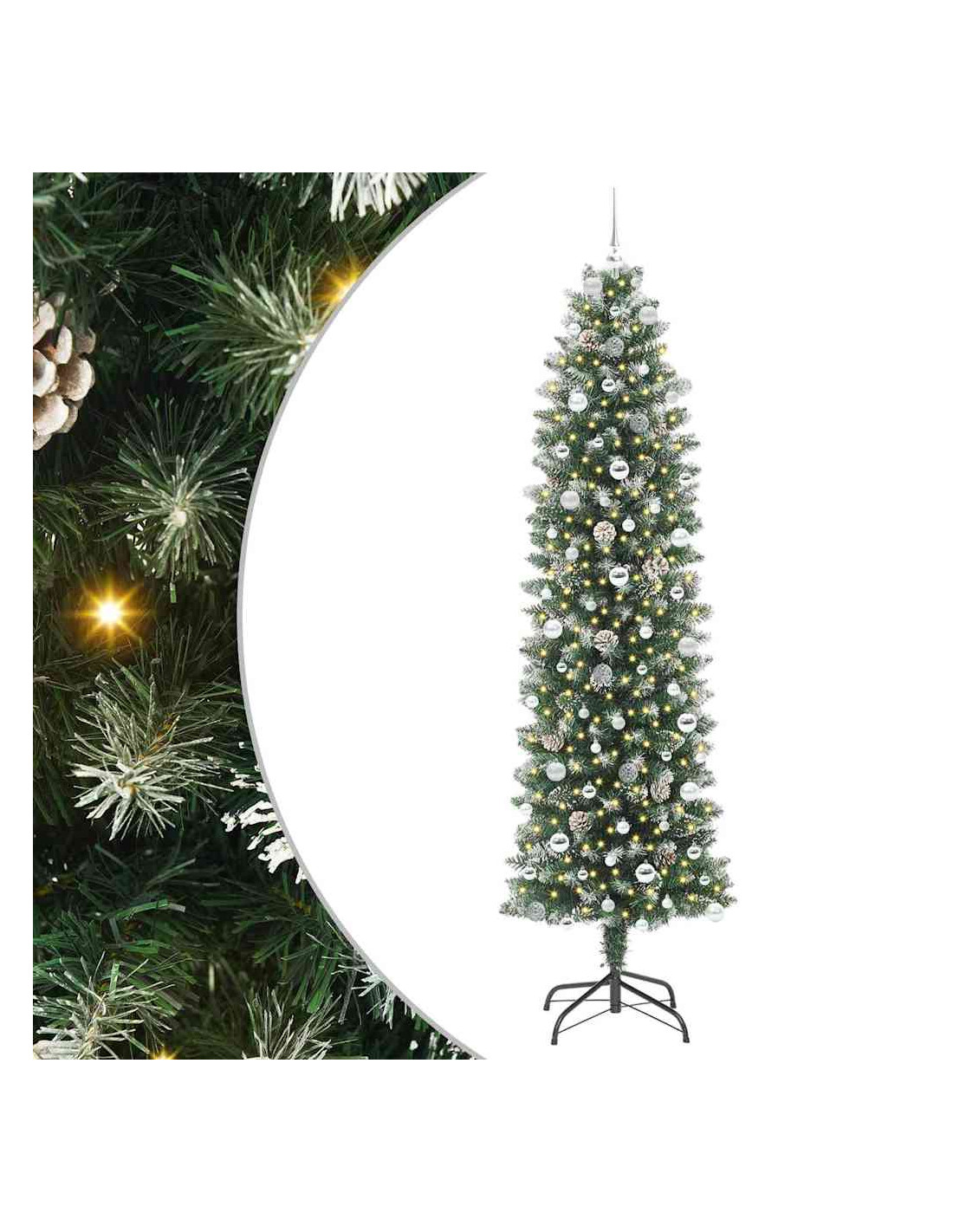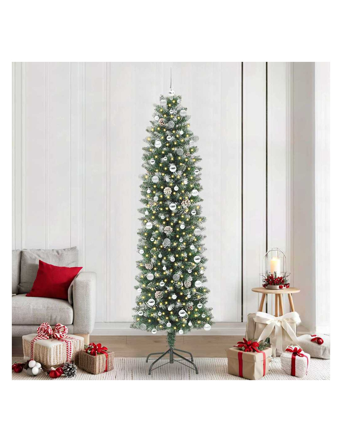 Questo albero di Natale artificiale sottile mescola stile moderno e aspetto realistico, rendendolo un'ottima aggiunta alla tua decorazione per le feste. La sua forma conica si integra bene in qualsiasi soggiorno, perfetto per spazi piccoli o appartamenti. Con materiali in PVC e metallo, emula la bellezza naturale di un pino tradizionale e offre anche resistenza per le feste. Goditi il caldo bagliore delle sue luci a striscia LED che portano un'atmosfera gioiosa ai raduni familiari, feste e serate accoglienti.