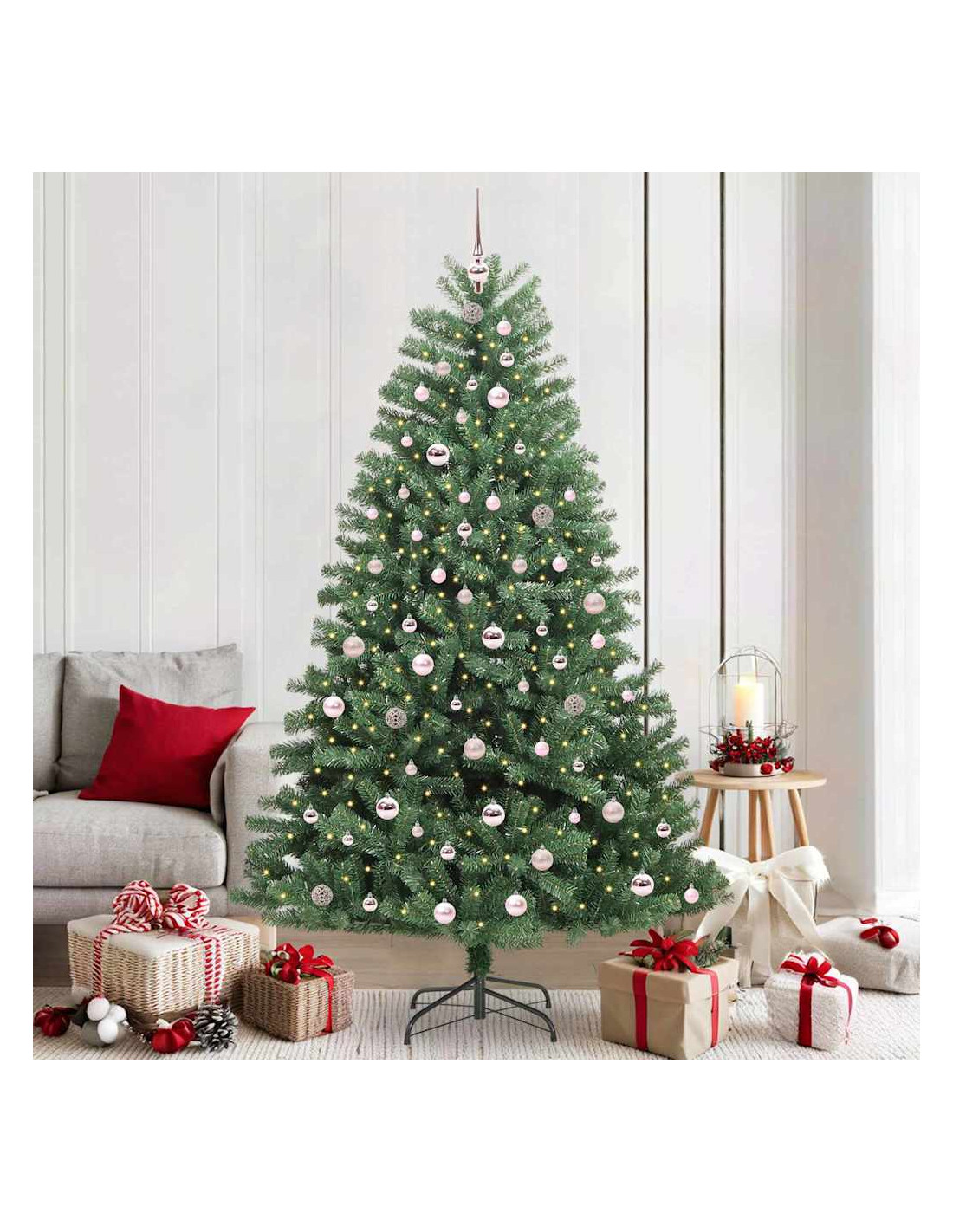 - Materiali di alta qualità: Questo albero è fatto di PVC resistente, quindi è durevole e resiste all'usura del montaggio e della conservazione. Il PVC rende l'albero simile a un abete vero e offre anche proprietà ignifughe per una maggiore sicurezza. Così, la tua decorazione sarà bella e sicura durante le feste.