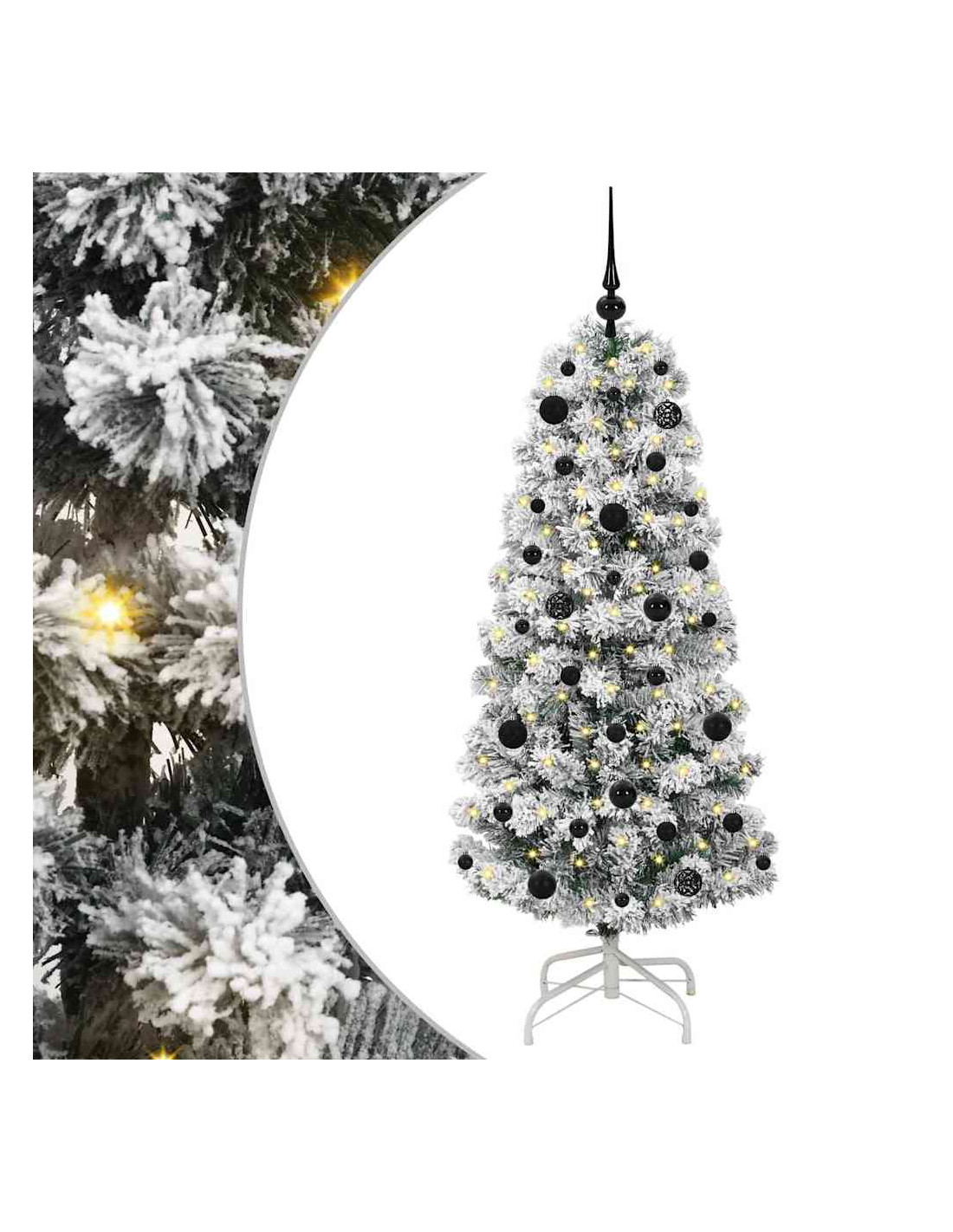 - 1 x Albero di Natale artificiale con rami snodabili, 1 x Base, 1 x Filo di luci LED, 1 x Picco, 20 x palline da 3 cm, 21 x palline da 4 cm, 20 x palline da 6 cm