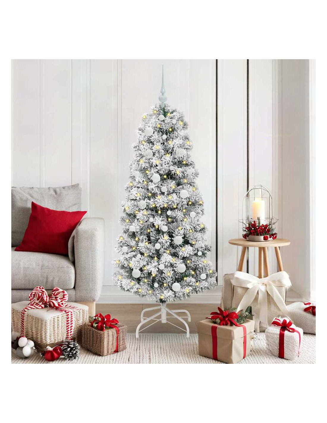 - 1 x Albero di Natale artificiale con rami snodabili, 1 x Base, 1 x Filo di luci LED, 1 x Picco, 20 x palline da 3 cm, 21 x palline da 4 cm, 20 x palline da 6 cm