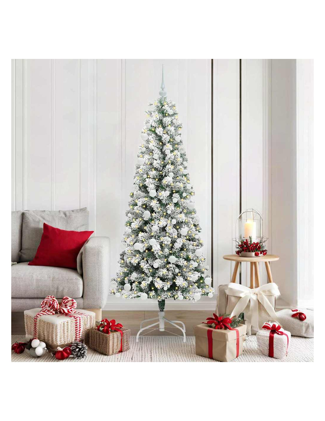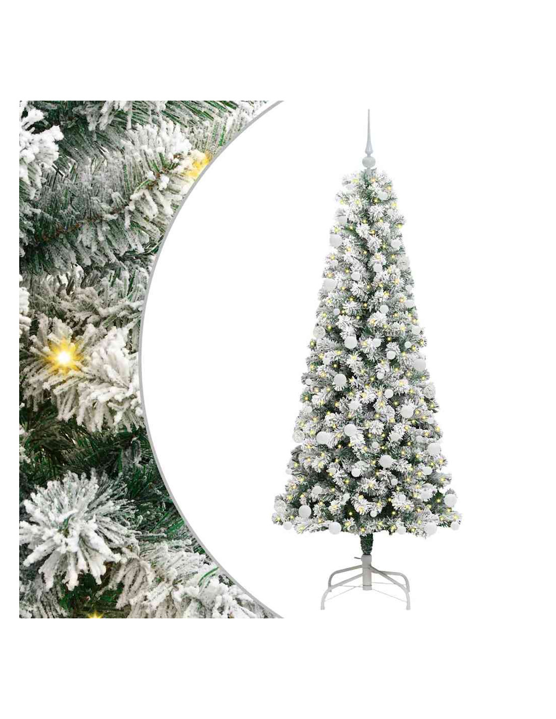 - 1 x Albero di Natale artificiale con rami snodabili, 1 x Base, 1 x Filo di luci LED, 1 x Picco, 40 x palline da 3 cm, 40 x palline da 4 cm, 40 x palline da 6 cm