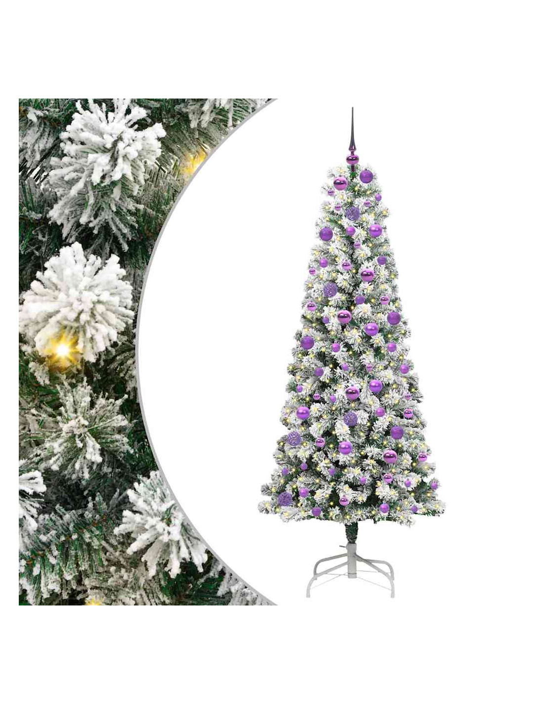 - 1 x Albero di Natale artificiale con rami snodabili, 1 x Base, 1 x Filo di luci LED, 1 x Picco, 40 x palline da 3 cm, 40 x palline da 4 cm, 40 x palline da 6 cm