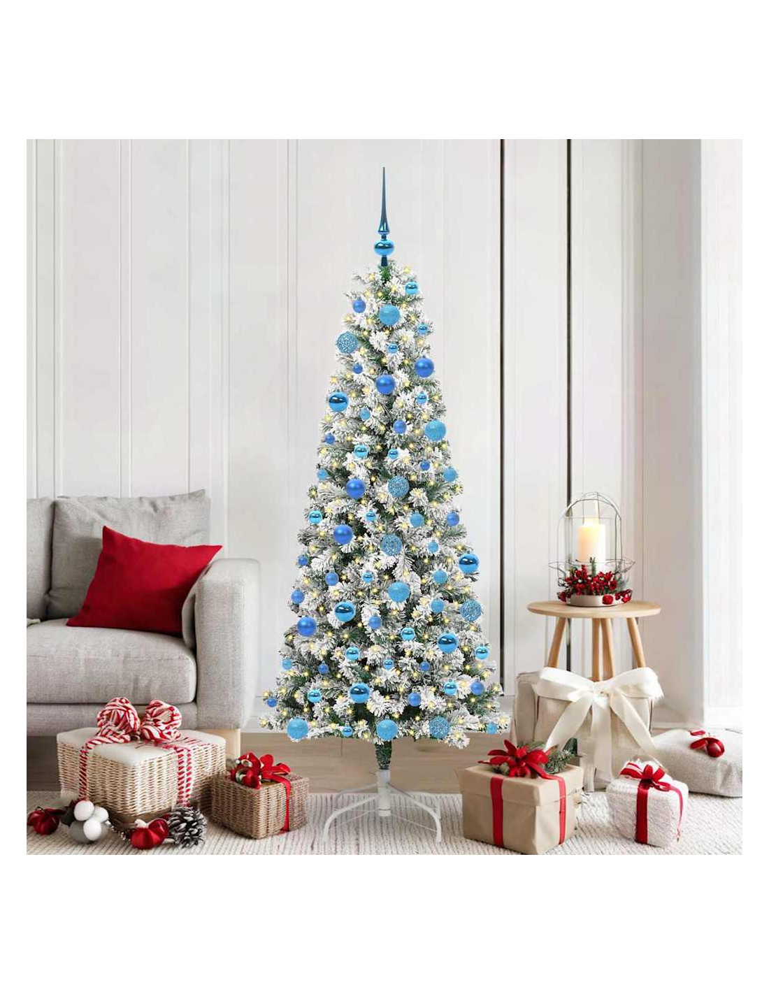 - 1 x Albero di Natale artificiale con rami snodabili, 1 x Base, 1 x Filo di luci LED, 1 x Picco, 40 x palline da 3 cm, 40 x palline da 4 cm, 40 x palline da 6 cm
