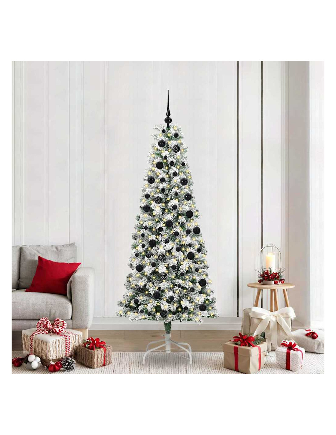 - 1 x Albero di Natale artificiale con rami snodabili, 1 x Base, 1 x Filo di luci LED, 1 x Picco, 40 x palline da 3 cm, 40 x palline da 4 cm, 40 x palline da 6 cm