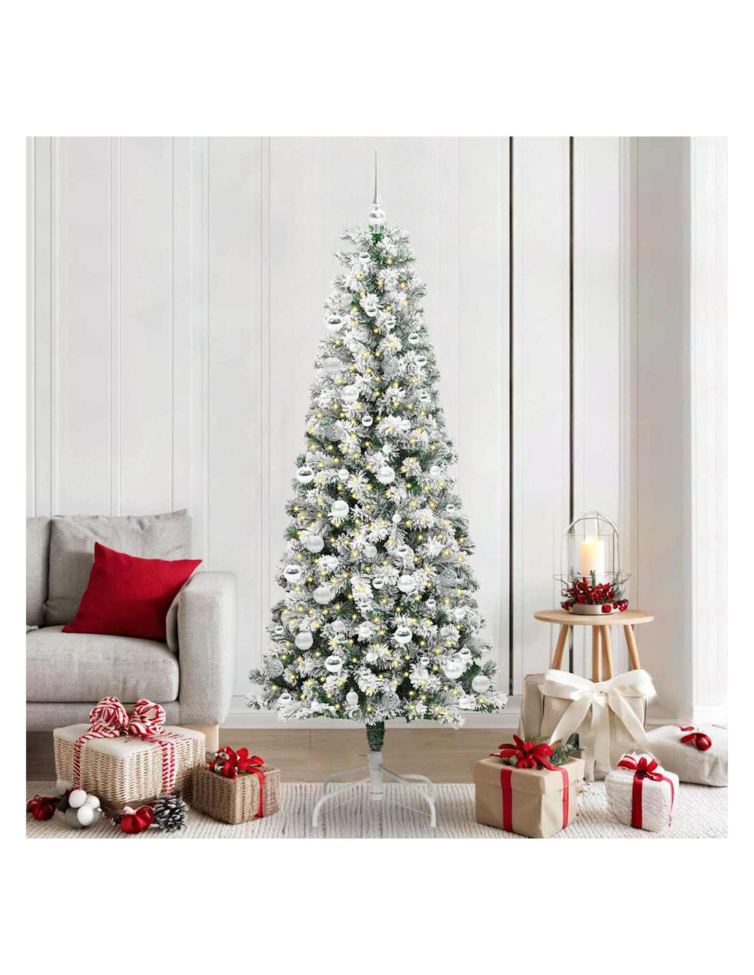 - 1 x Albero di Natale artificiale con rami snodabili, 1 x Base, 1 x Filo di luci LED, 1 x Picco, 40 x palline da 3 cm, 40 x palline da 4 cm, 40 x palline da 6 cm