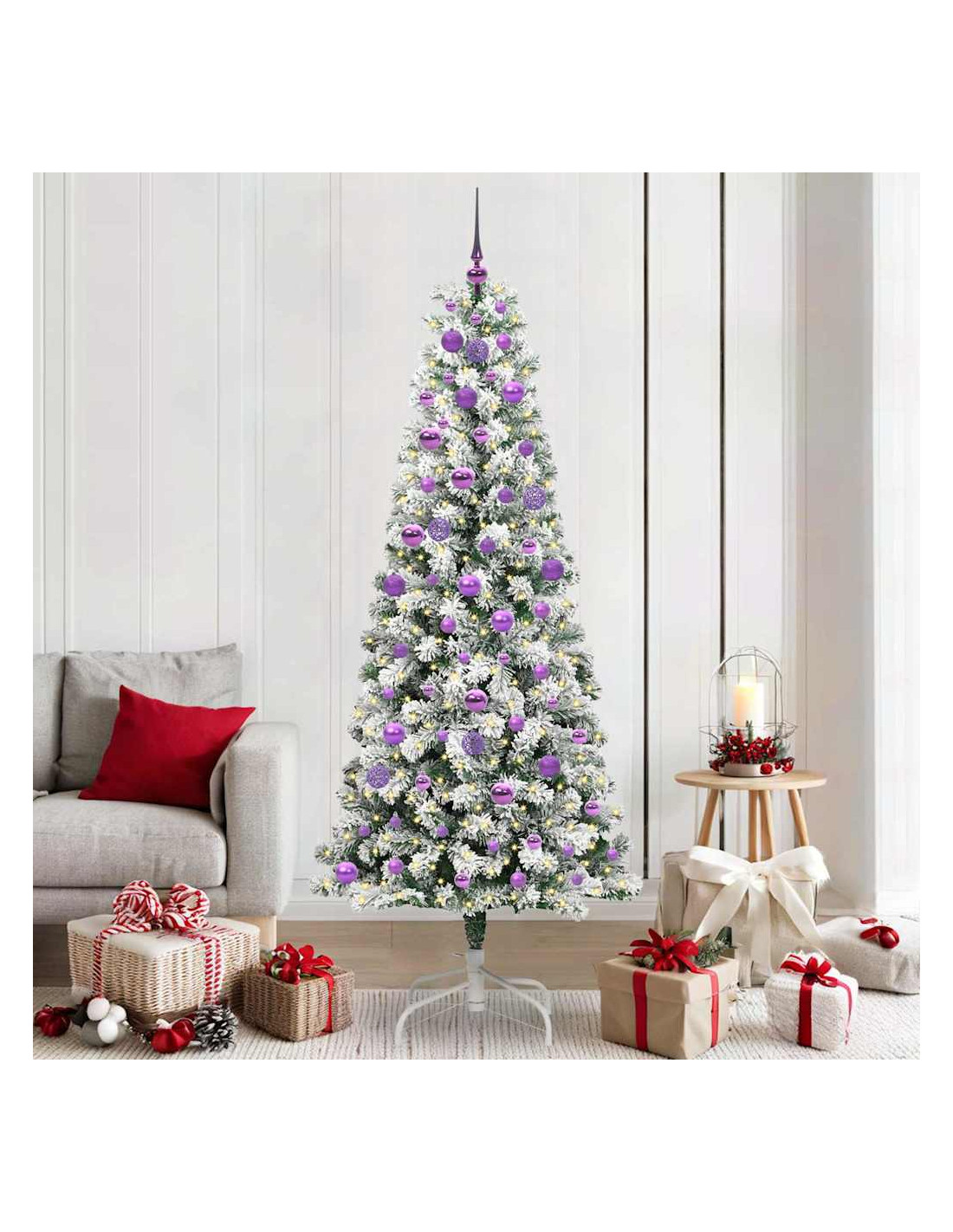 - 1 x Albero di Natale artificiale con rami snodabili, 1 x Base, 1 x Filo di luci LED, 1 x Picco, 40 x palline da 3 cm, 40 x palline da 4 cm, 40 x palline da 6 cm
