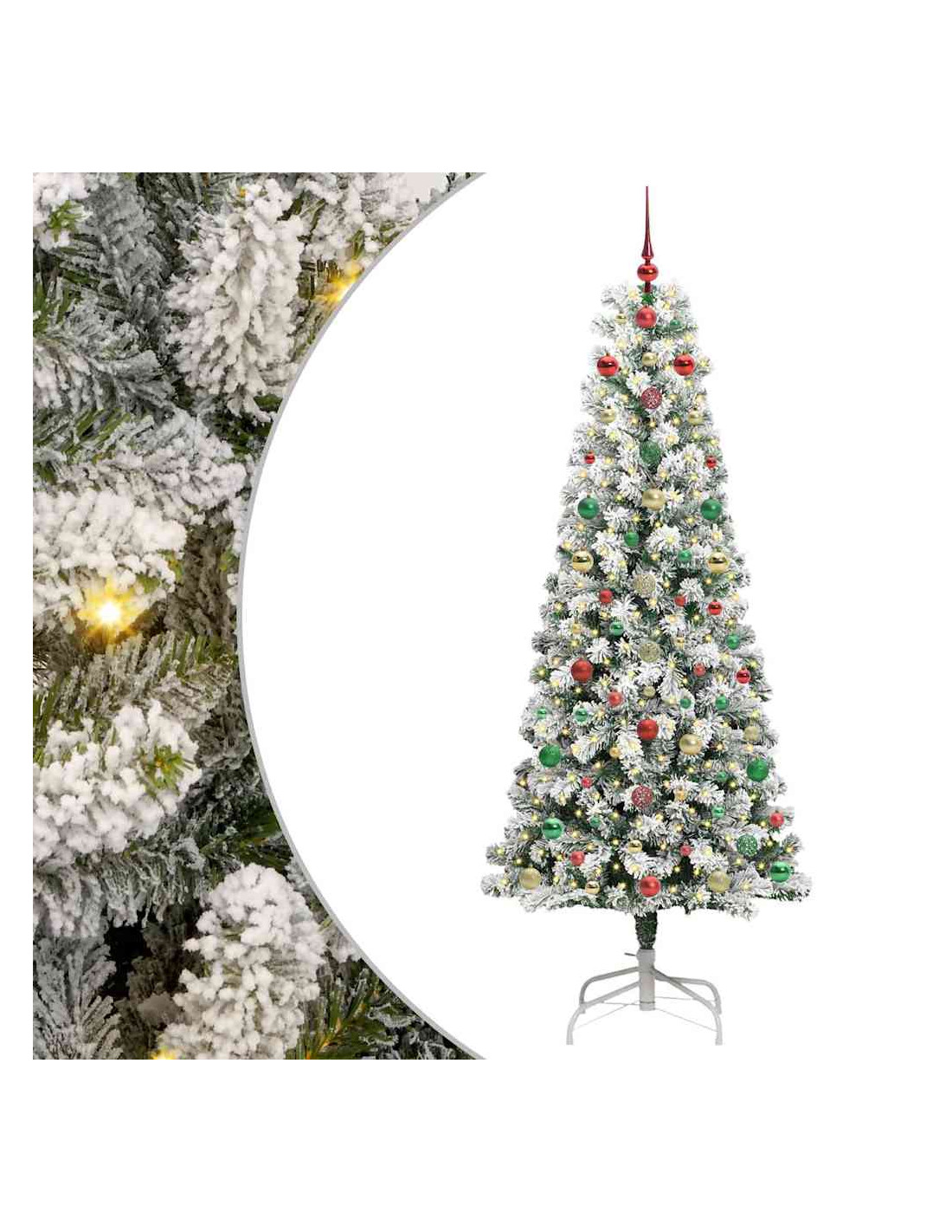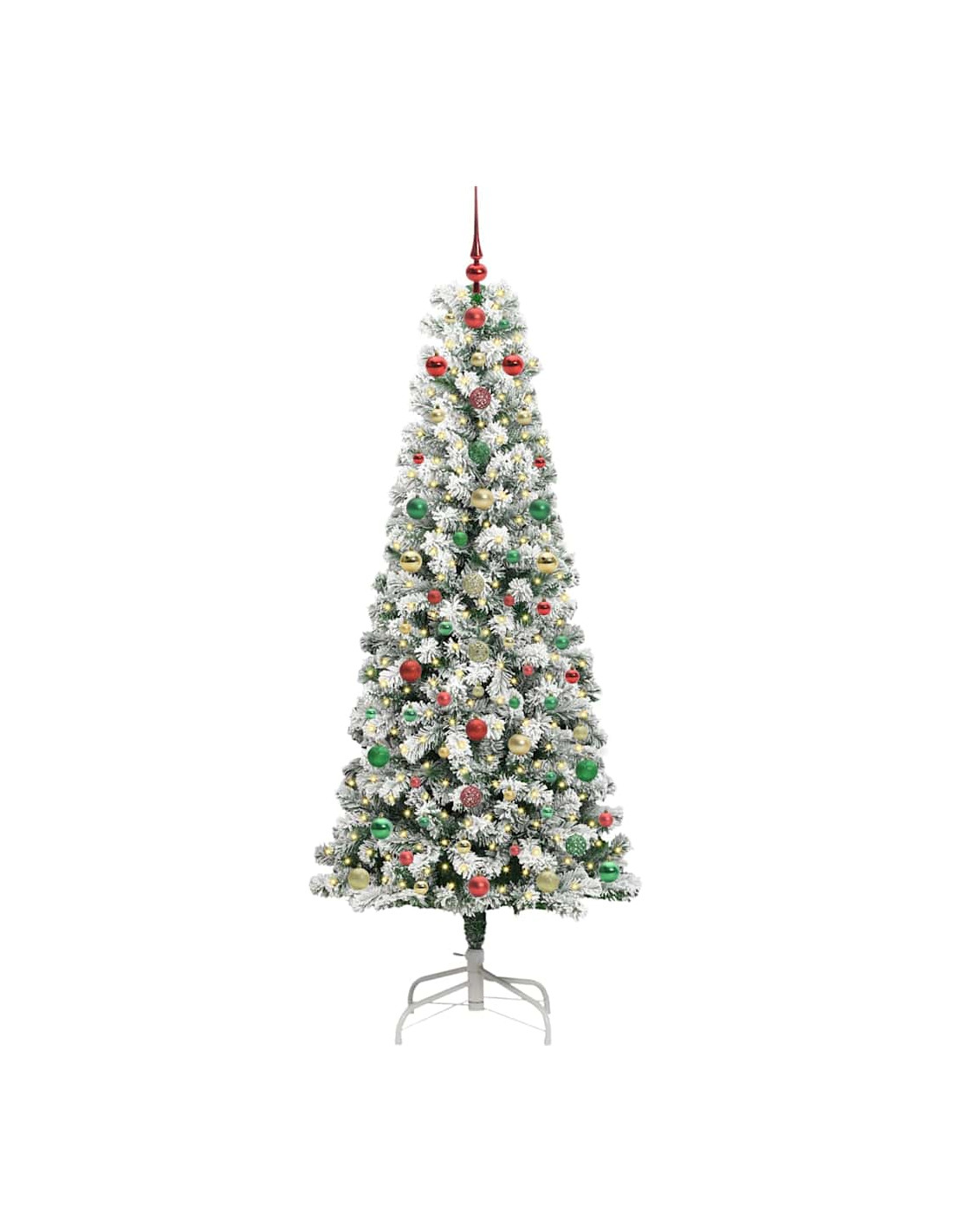 - 1 x Albero di Natale artificiale con rami snodabili, 1 x Base, 1 x Filo di luci LED, 1 x Picco, 40 x palline da 3 cm, 40 x palline da 4 cm, 40 x palline da 6 cm