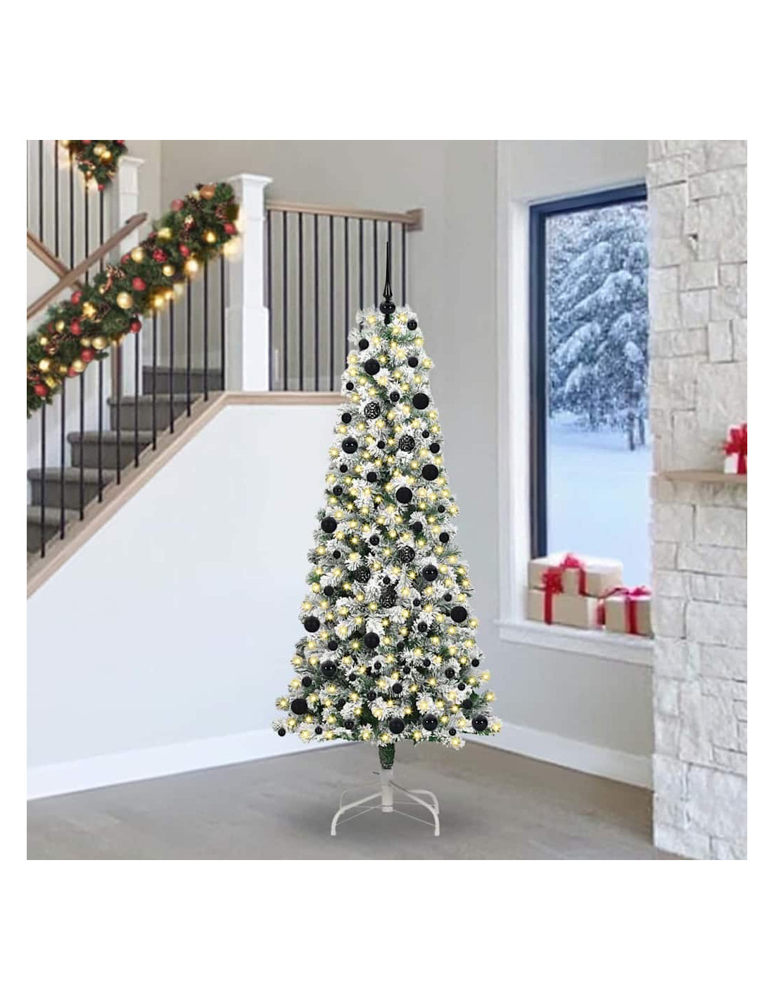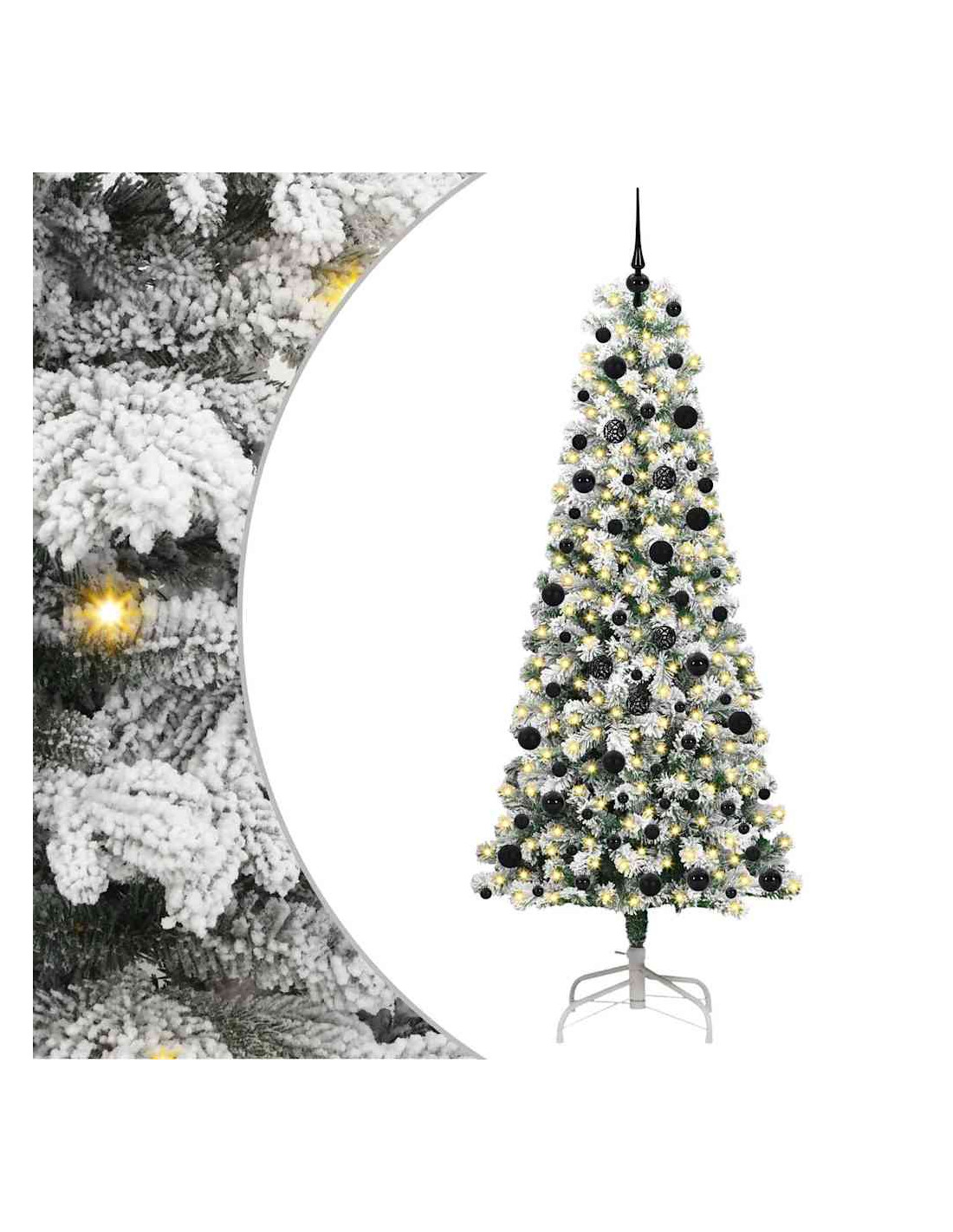 - 1 x Albero di Natale artificiale con rami snodabili, 1 x Base, 1 x Filo di luci LED, 1 x Picco, 40 x palline da 3 cm, 40 x palline da 4 cm, 40 x palline da 6 cm