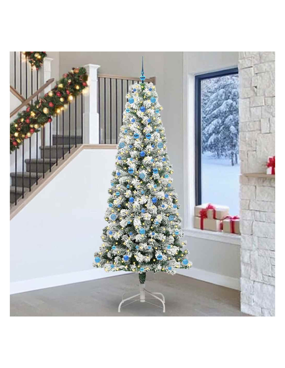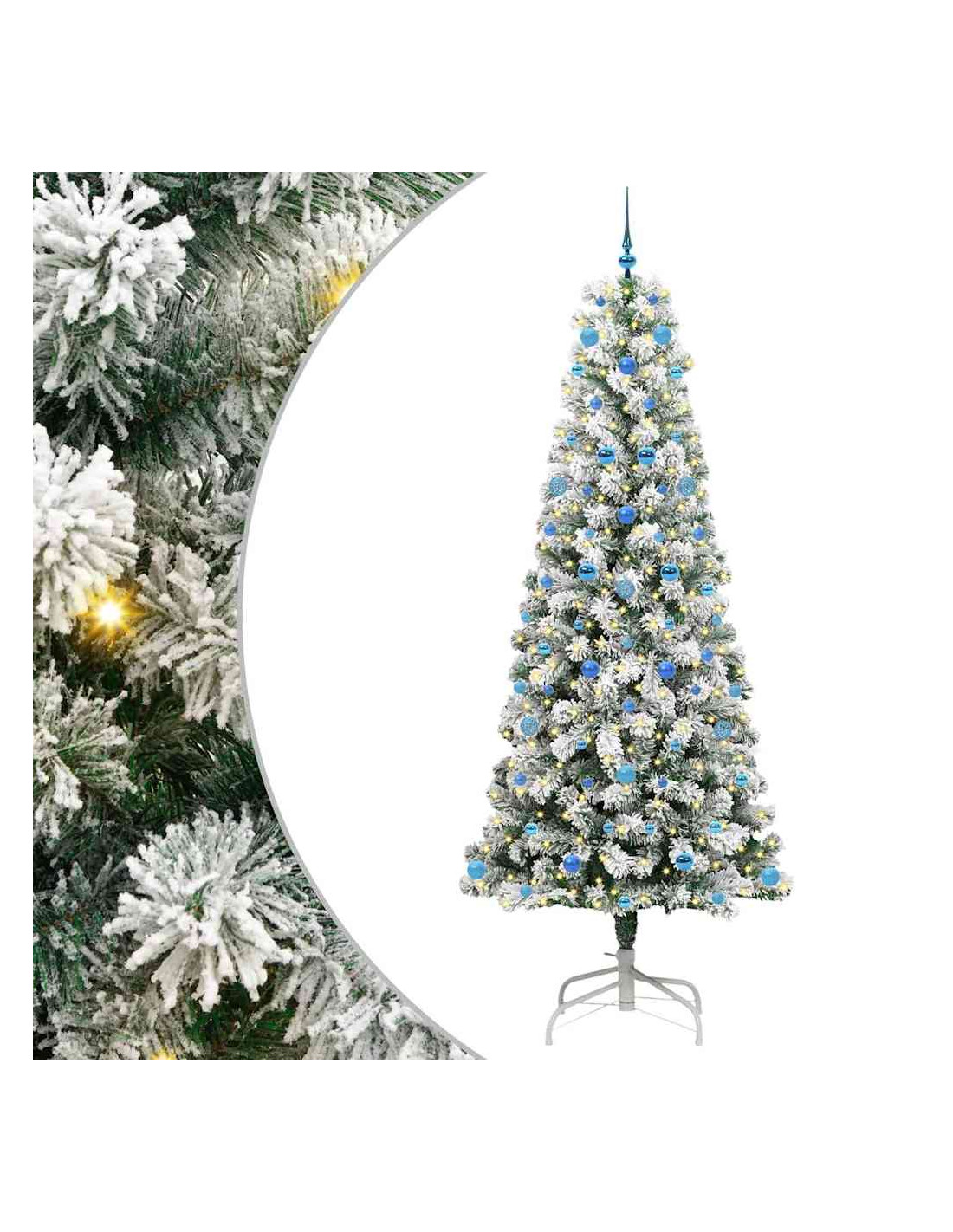 - 1 x Albero di Natale artificiale con rami snodabili, 1 x Base, 1 x Filo di luci LED, 1 x Picco, 40 x palline da 3 cm, 40 x palline da 4 cm, 40 x palline da 6 cm