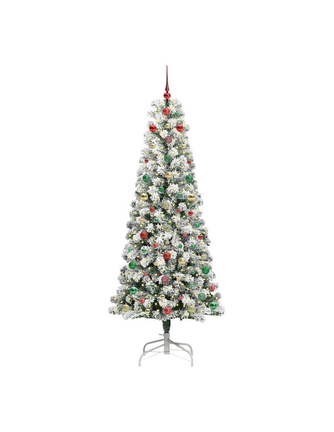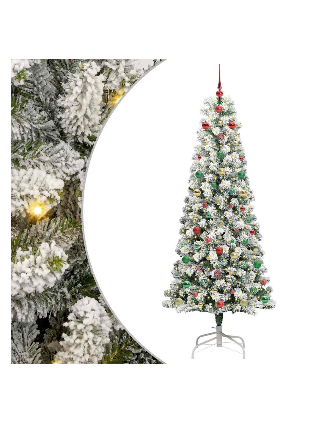 - 1 x Albero di Natale artificiale con rami snodabili, 1 x Base, 1 x Filo di luci LED, 1 x Picco, 40 x palline da 3 cm, 40 x palline da 4 cm, 40 x palline da 6 cm