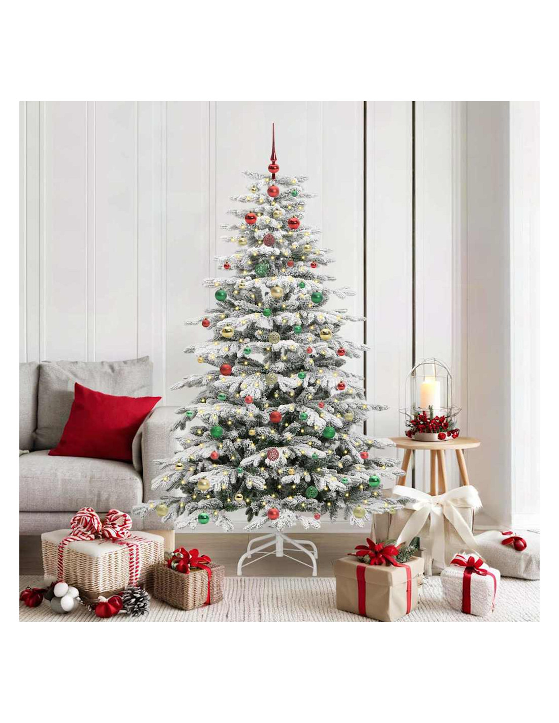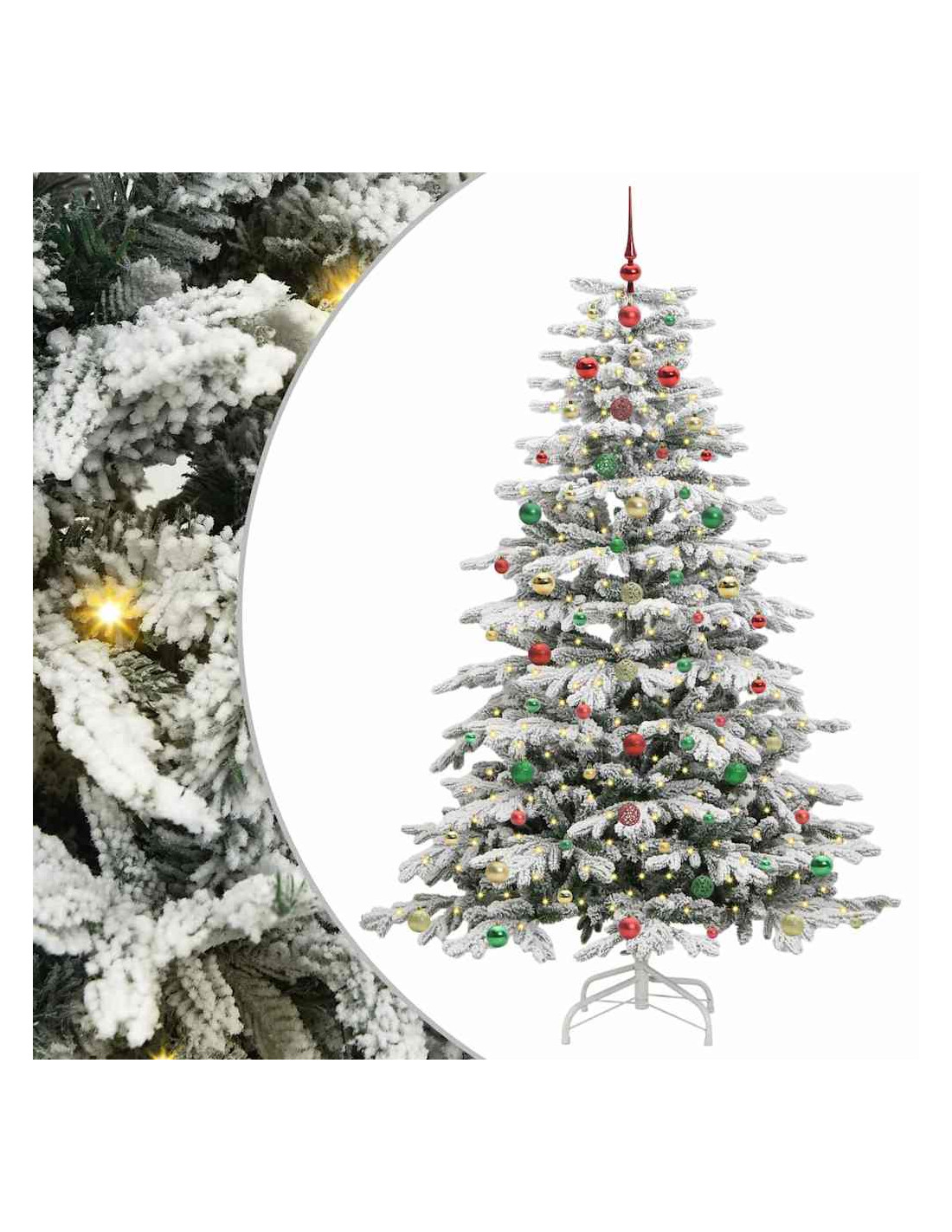- Materiali Resistenti: Fatto di polietilene (PE) e cloruro di polivinile (PVC), questo albero è super resistente e duraturo. I materiali garantiscono che l'albero mantenga la sua forma e il suo aspetto, stagione dopo stagione. La finitura naturale dà un aspetto realistico, migliorando la sua bellezza visiva.