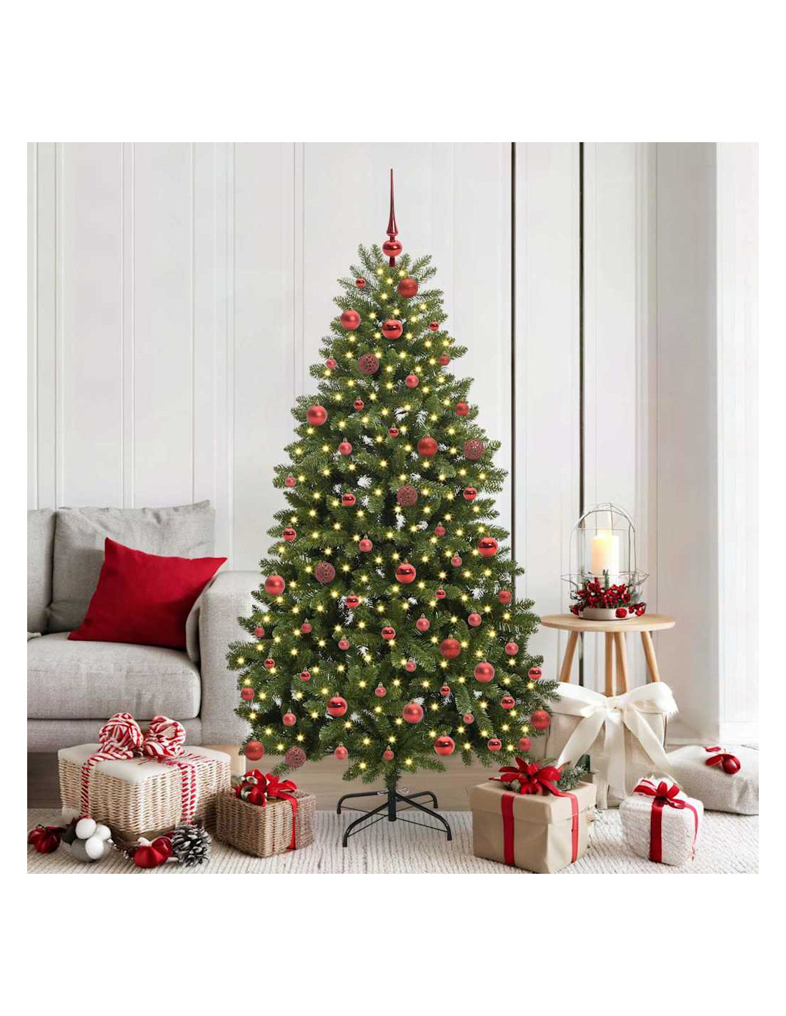 - Componenti Inclusi: L'albero viene fornito con comode luci LED integrate di colore bianco caldo, che creano un'atmosfera natalizia fantastica. Queste luci sono già incorporate nell'albero, così l’aspetto è perfetto e l'illuminazione è brillante.