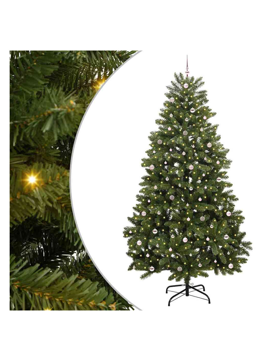- Componenti Inclusi: L'albero viene fornito con comode luci LED integrate di colore bianco caldo, che creano un'atmosfera natalizia fantastica. Queste luci sono già incorporate nell'albero, così l’aspetto è perfetto e l'illuminazione è brillante.