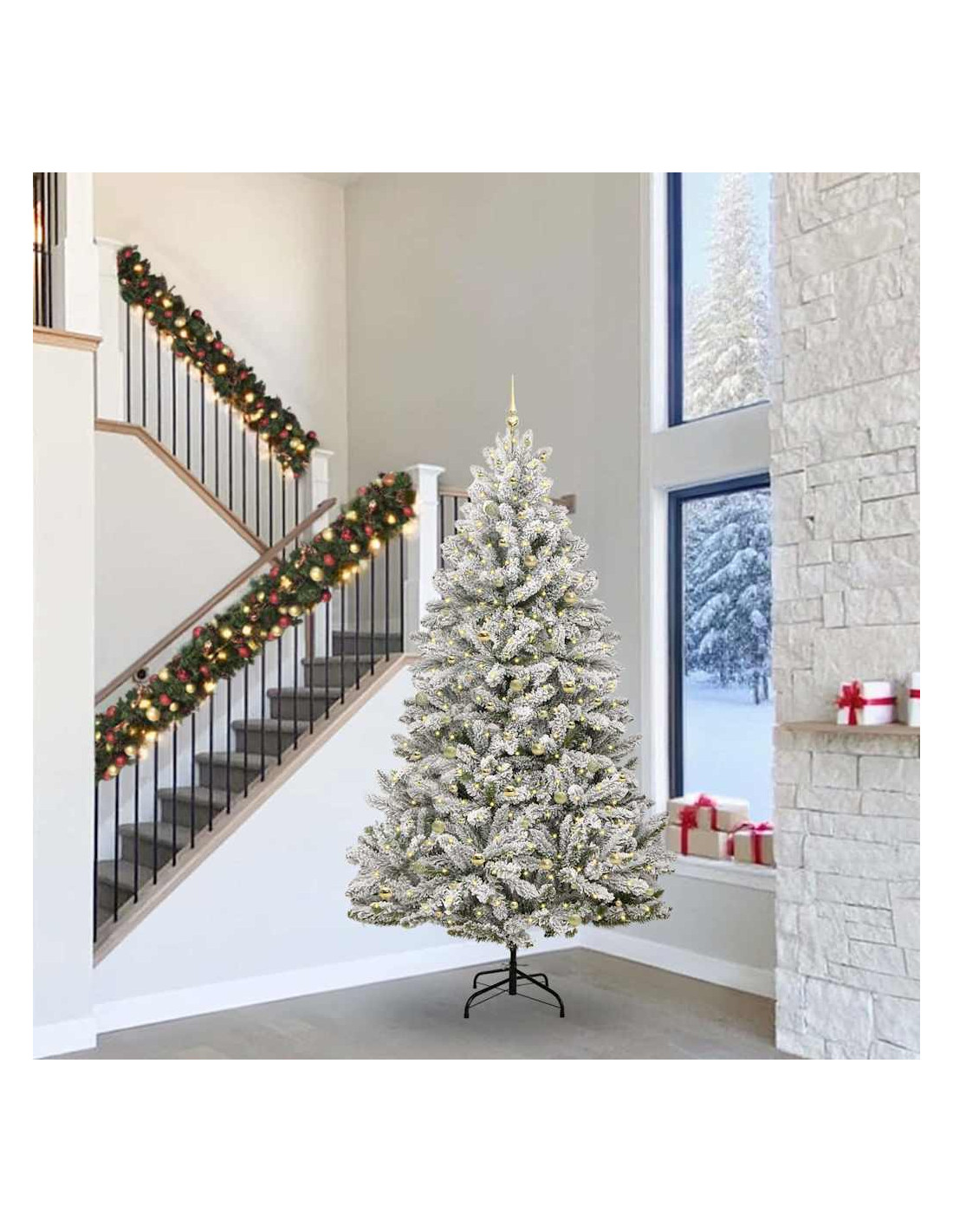 - Componenti Inclusi: L'albero viene fornito con comode luci LED integrate di colore bianco caldo, che creano un'atmosfera natalizia fantastica. Queste luci sono già incorporate nell'albero, così l’aspetto è perfetto e l'illuminazione è brillante.