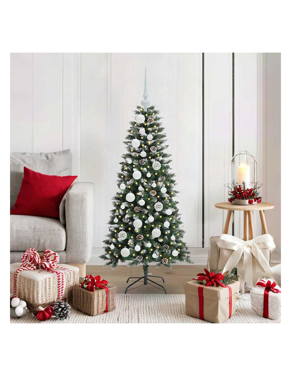 - Design Moderno e Snello: Con linee pulite e decorazioni minime, questo albero si integra perfettamente nello stile moderno. La sua silhouette sottile si abbina alla perfezione all’arredamento contemporaneo, creando un'atmosfera festiva elegante e senza tempo.