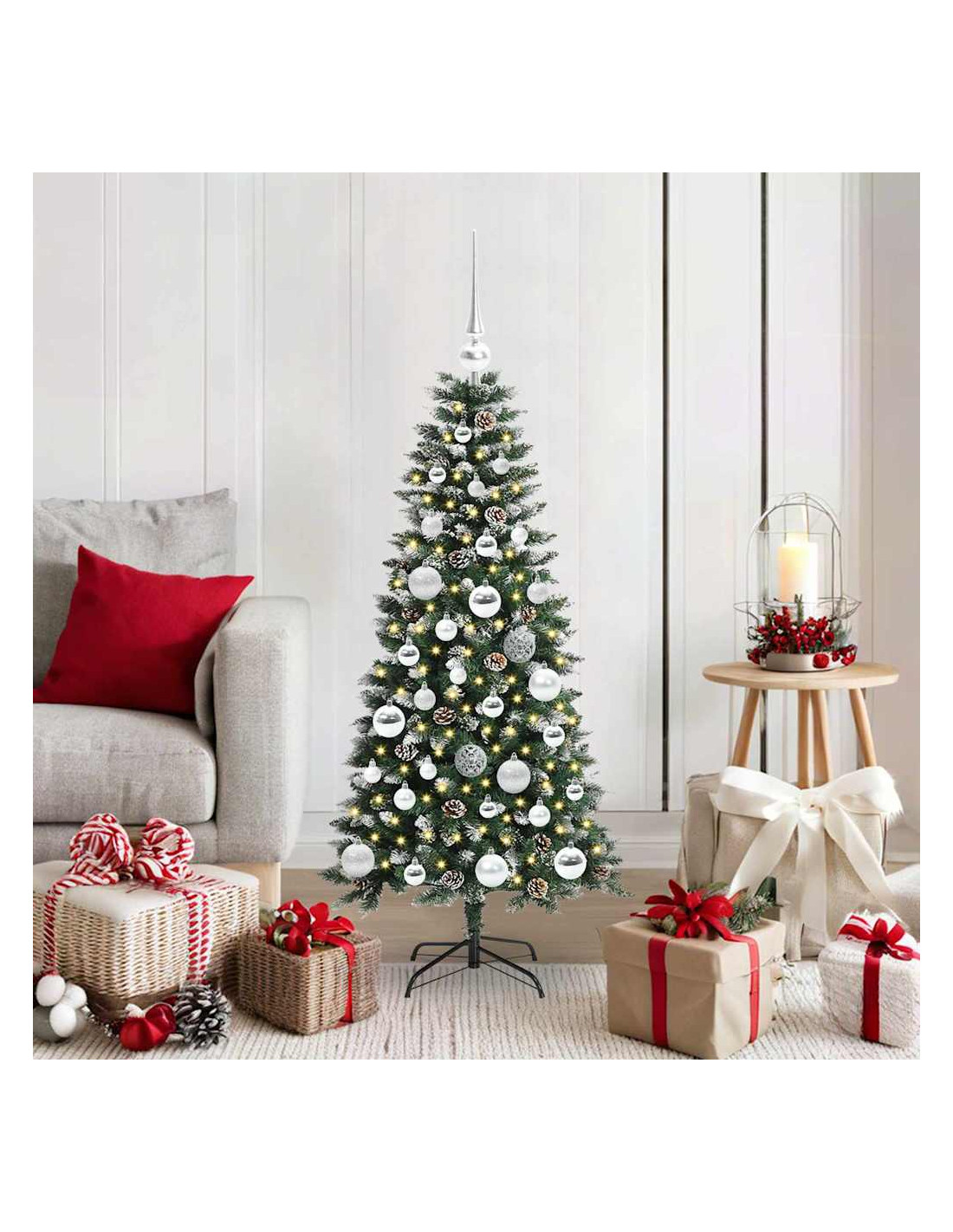 - Design Moderno e Snello: Con linee pulite e decorazioni minime, questo albero si integra perfettamente nello stile moderno. La sua silhouette sottile si abbina alla perfezione all’arredamento contemporaneo, creando un'atmosfera festiva elegante e senza tempo.