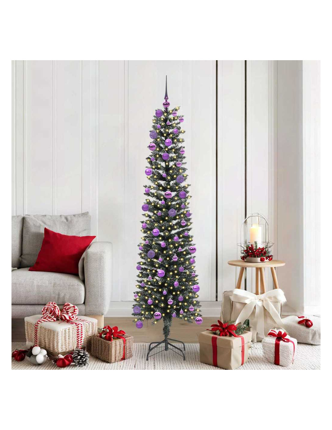 Questo albero di Natale artificiale moderno è un mix di stile e funzionalità, perfetto per dare un tocco speciale alla tua decorazione festiva. Ha una forma conica che è semplice e moderna, e si integra facilmente sia dentro che fuori casa. Adatto per soggiorni o patii, porta la magia del Natale nel tuo spazio con le strisce LED incorporate che creano una calda luce bianca, perfetta per entrare nello spirito festivo.