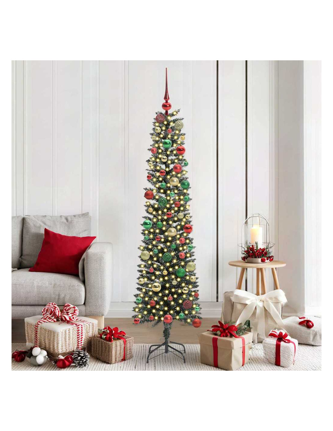 Questo albero di Natale artificiale moderno è un mix di stile e funzionalità, perfetto per dare un tocco speciale alla tua decorazione festiva. Ha una forma conica che è semplice e moderna, e si integra facilmente sia dentro che fuori casa. Adatto per soggiorni o patii, porta la magia del Natale nel tuo spazio con le strisce LED incorporate che creano una calda luce bianca, perfetta per entrare nello spirito festivo.