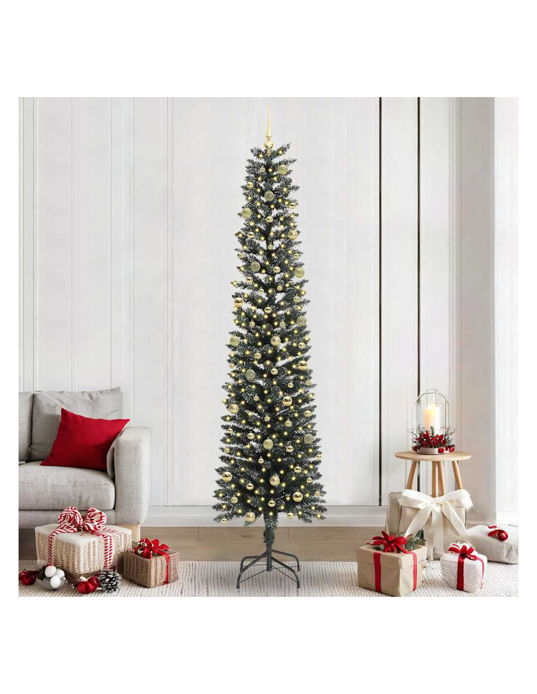 Questo albero di Natale artificiale moderno è un mix di stile e funzionalità, perfetto per dare un tocco speciale alla tua decorazione festiva. Ha una forma conica che è semplice e moderna, e si integra facilmente sia dentro che fuori casa. Adatto per soggiorni o patii, porta la magia del Natale nel tuo spazio con le strisce LED incorporate che creano una calda luce bianca, perfetta per entrare nello spirito festivo.