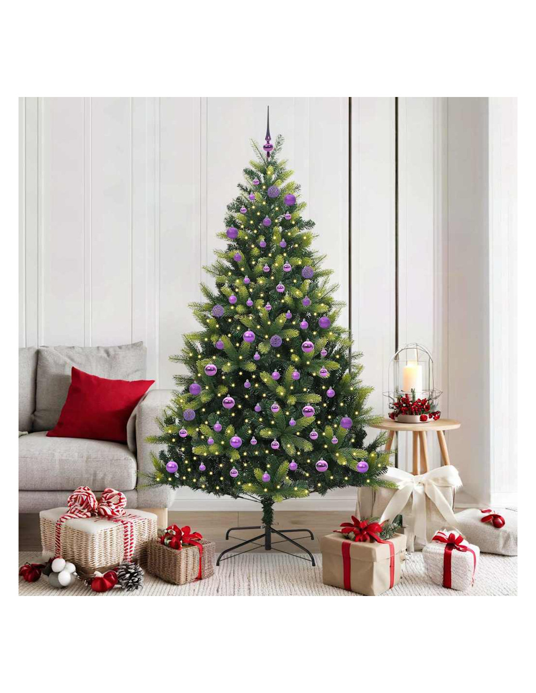 - Luci LED Incluse: Con le luci LED bianche calde, l'albero crea un'atmosfera accogliente senza avere bisogno di decorazioni extra. Ogni luce è posizionata strategicamente per illuminare uniformemente ogni ramo, esaltando i tuoi ornamenti e facendo brillare le decorazioni.