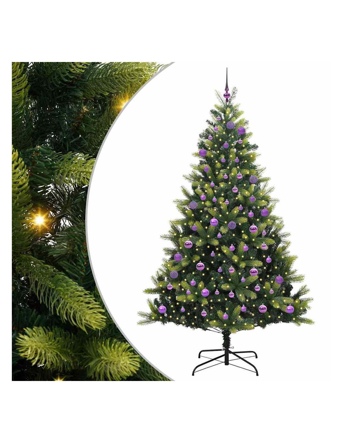 - Materiale di Qualità: Questo albero combina rami in PVC e PE di qualità, per un look realistico che ricorda i veri alberi di Natale. Questi materiali sono scelti per la loro durata e bassa manutenzione, quindi il tuo albero rimarrà bello stagione dopo stagione, senza seccarsi o perdere aghi come i veri alberi.