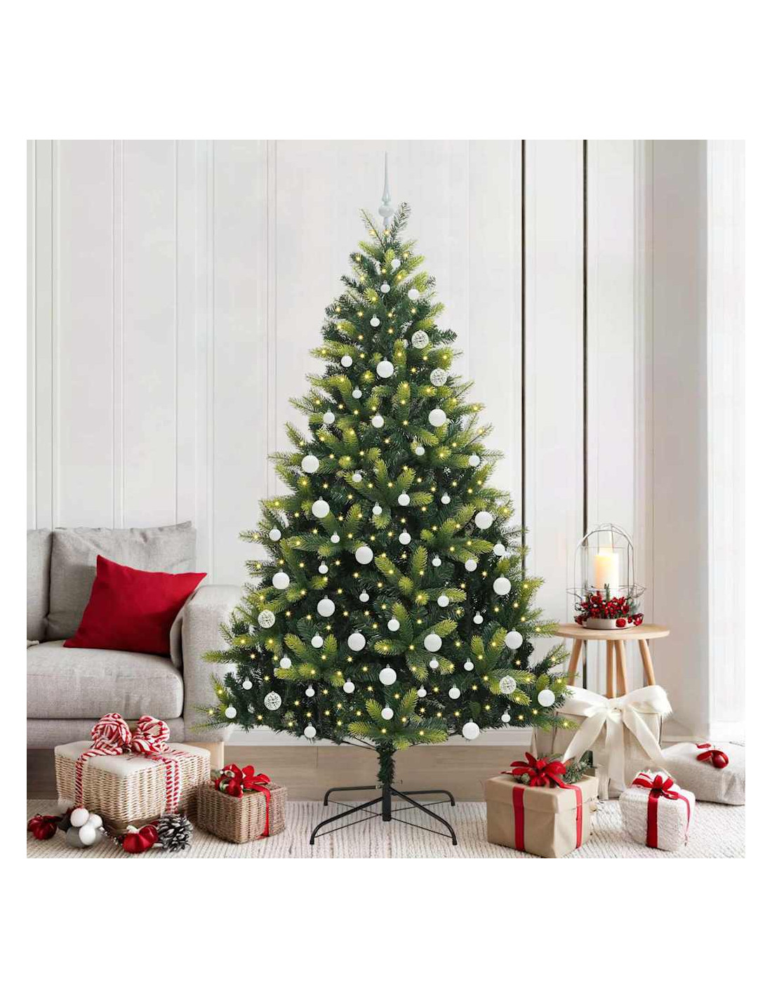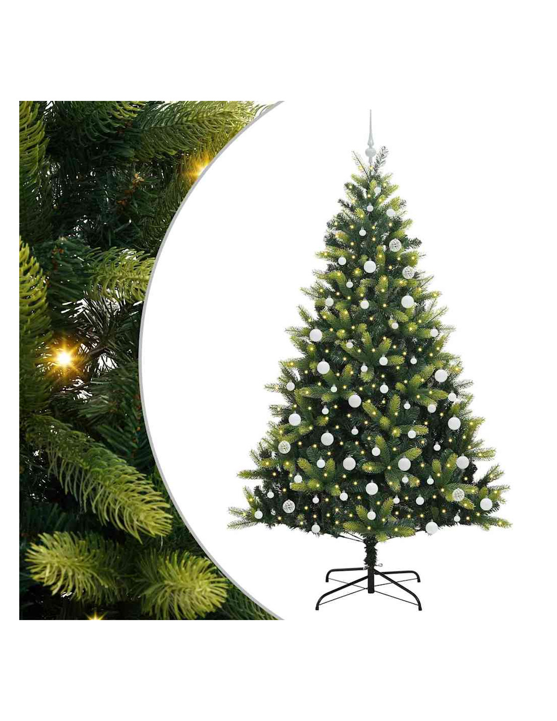 - Luci LED Incluse: Con le luci LED bianche calde, l'albero crea un'atmosfera accogliente senza avere bisogno di decorazioni extra. Ogni luce è posizionata strategicamente per illuminare uniformemente ogni ramo, esaltando i tuoi ornamenti e facendo brillare le decorazioni.